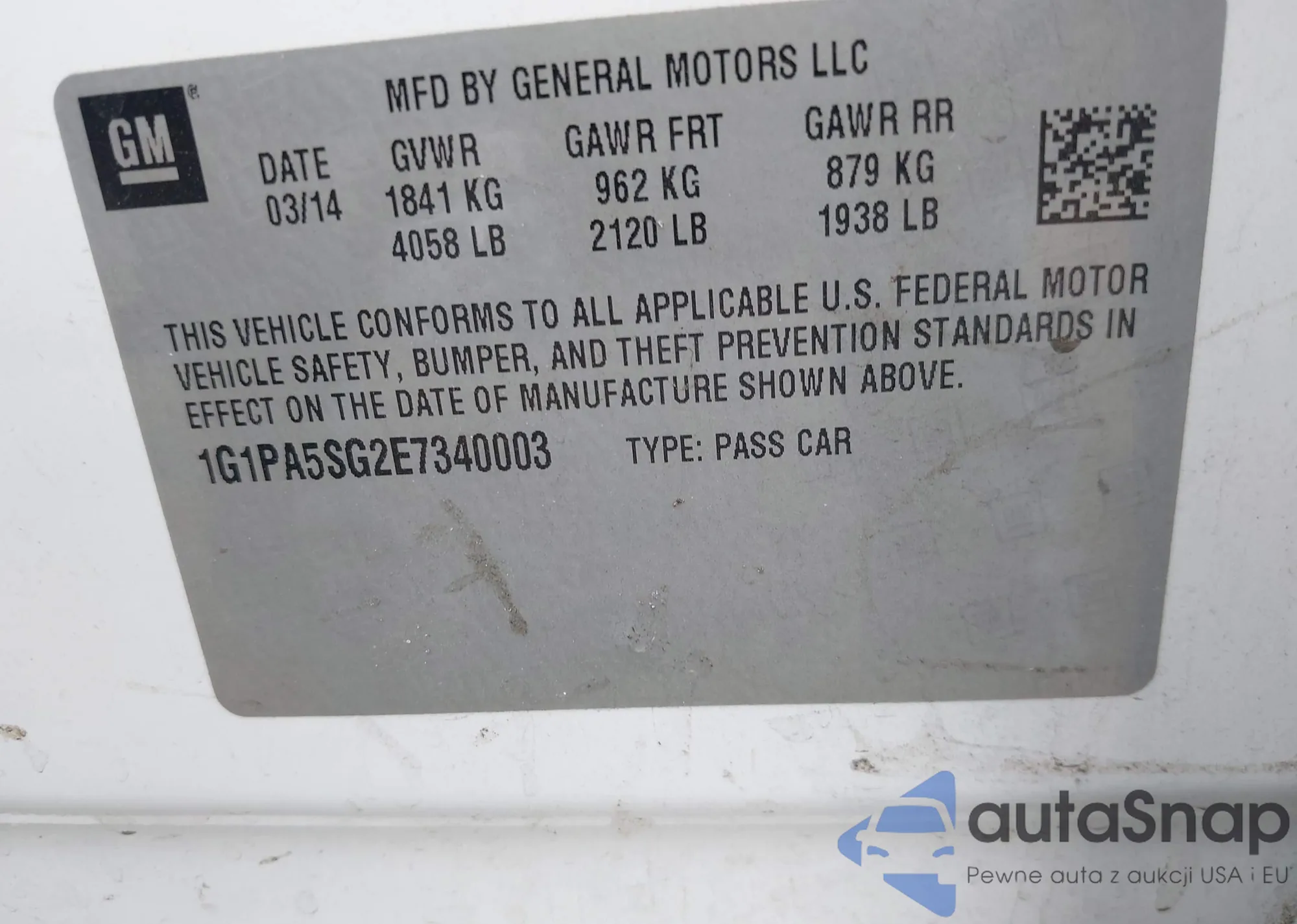 LOT: 43199350 VIN: 1G1PA5SG2E7340003