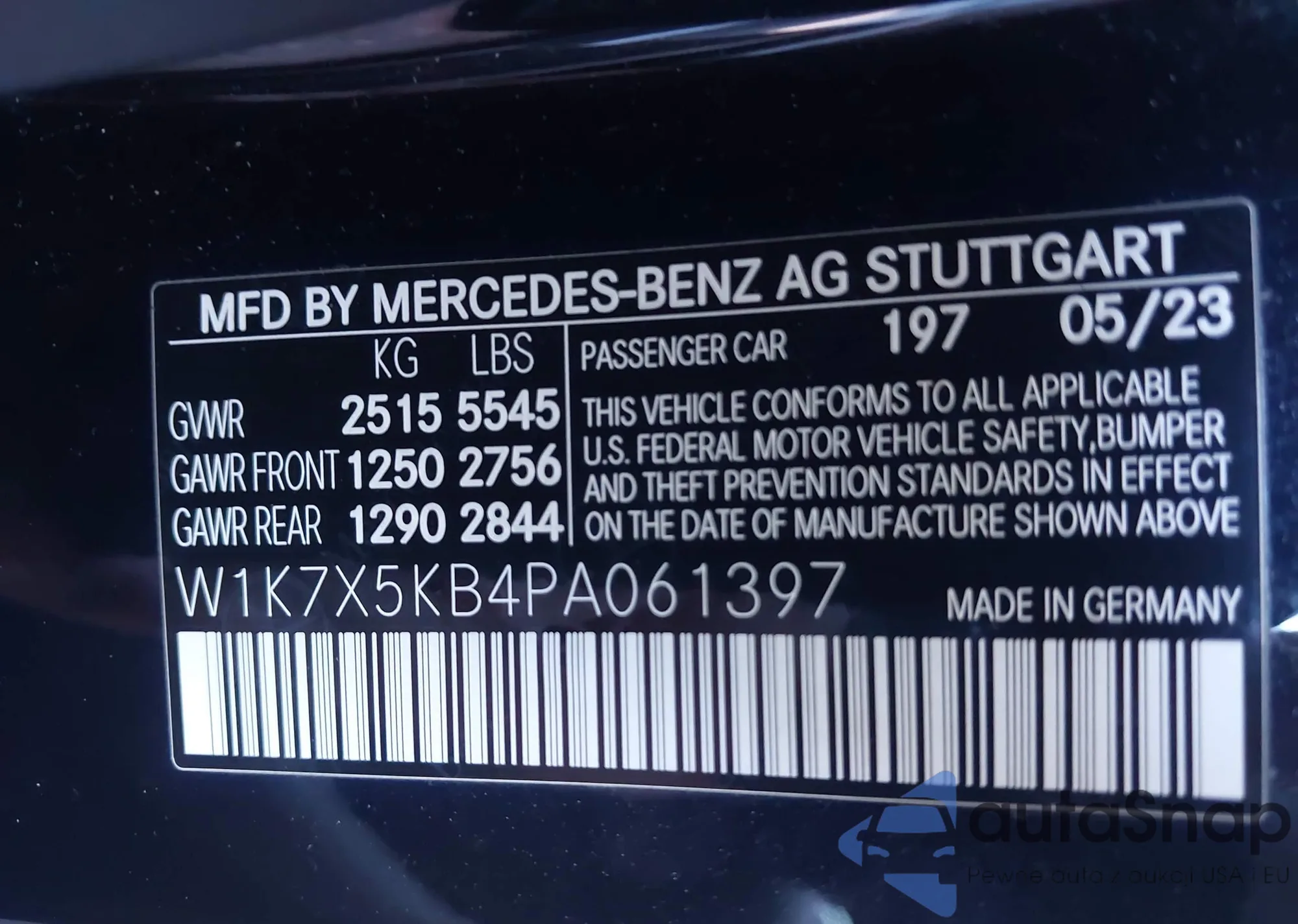LOT: 43189965 VIN: WBXJG7C05M5T49803
