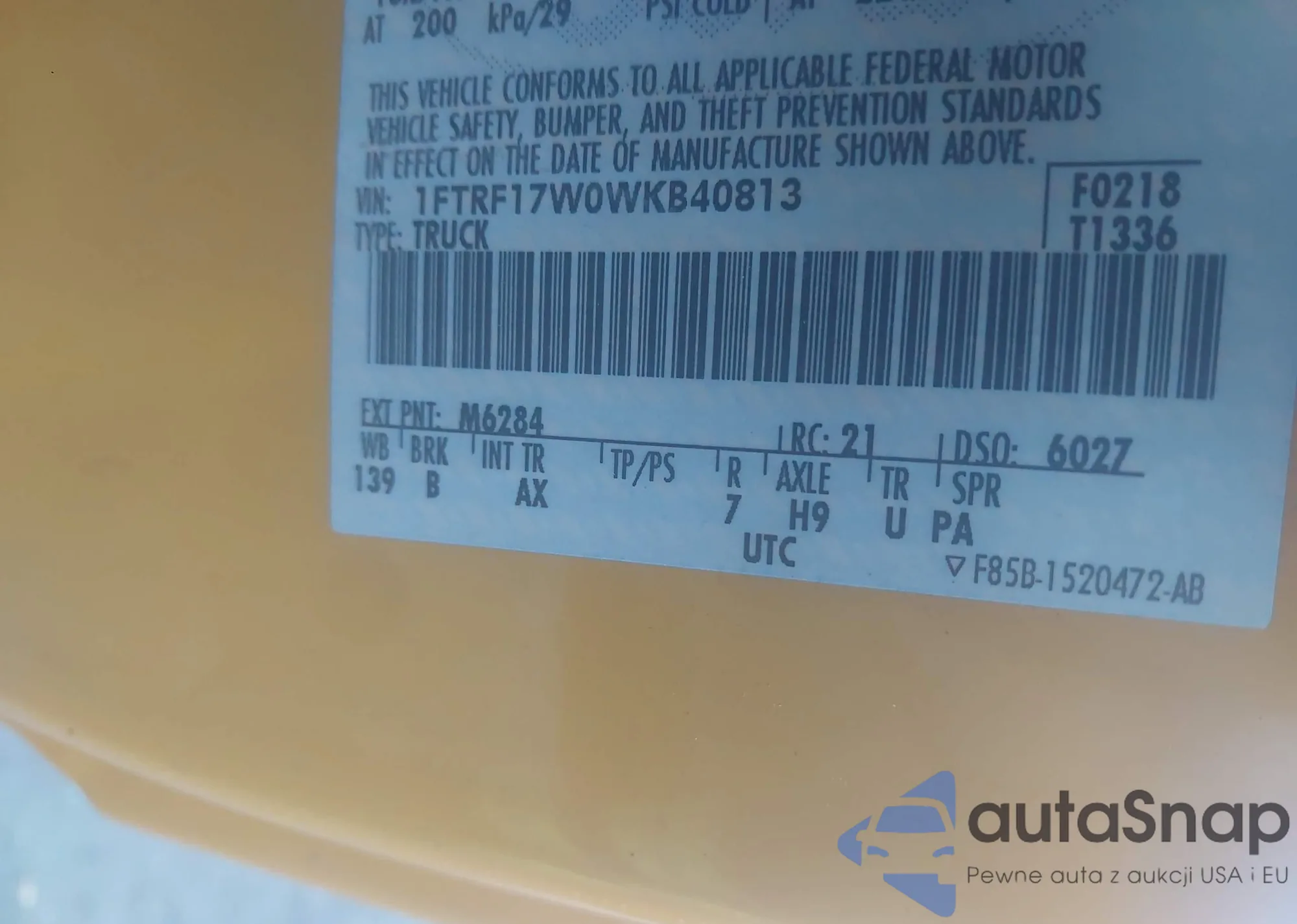 • VIN 1FTRF17W0WKB40813