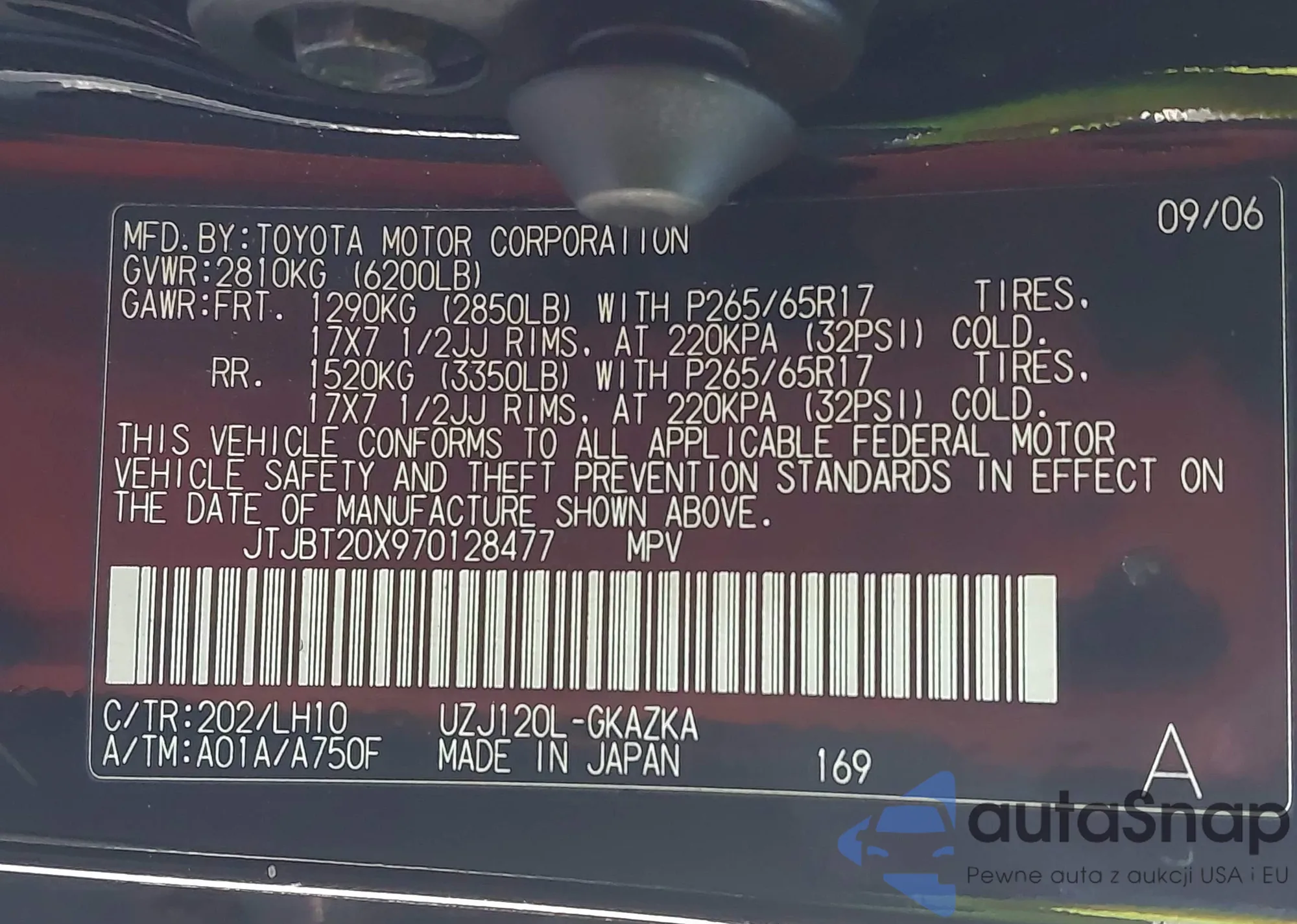 LOT: 43660894 VIN: 4T1BK36B08U283528