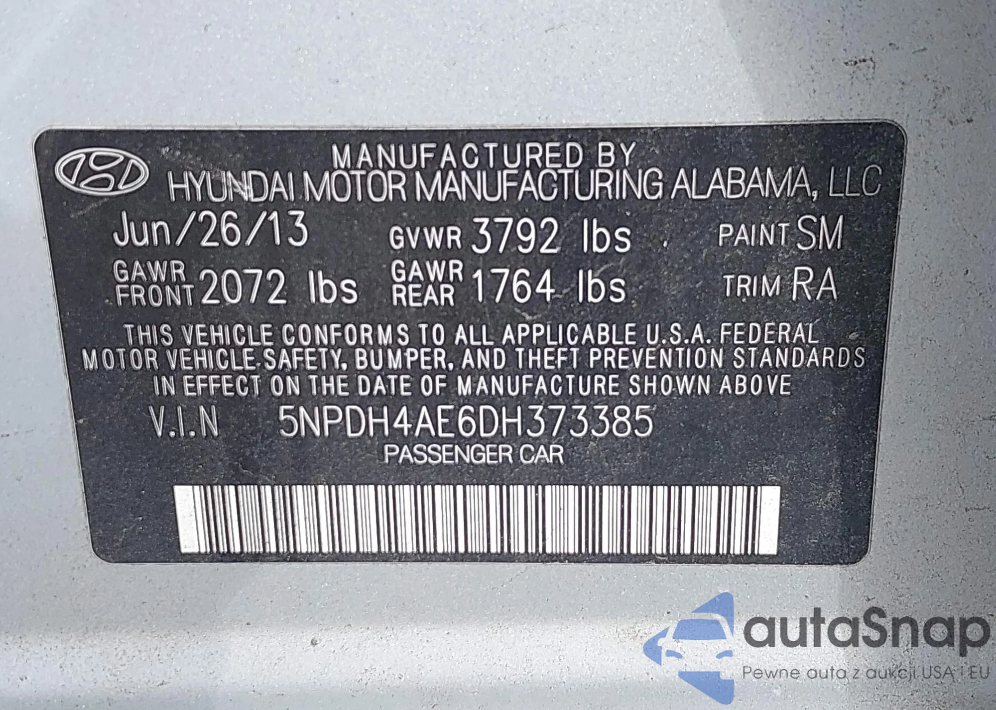 • VIN 5NPDH4AE6DH373385