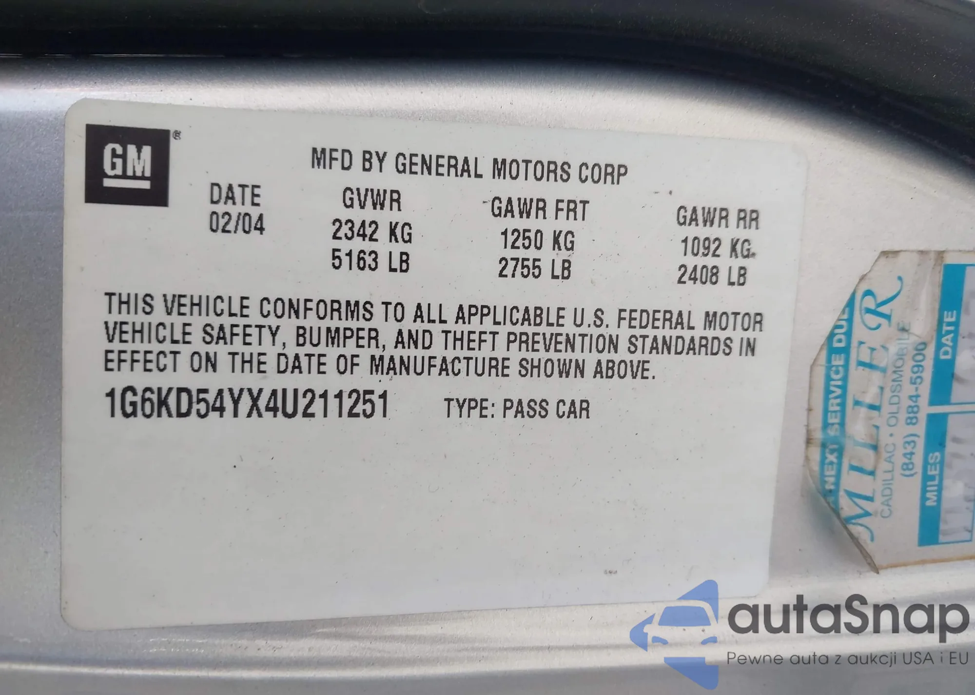 • VIN 1G6KD54YX4U211251