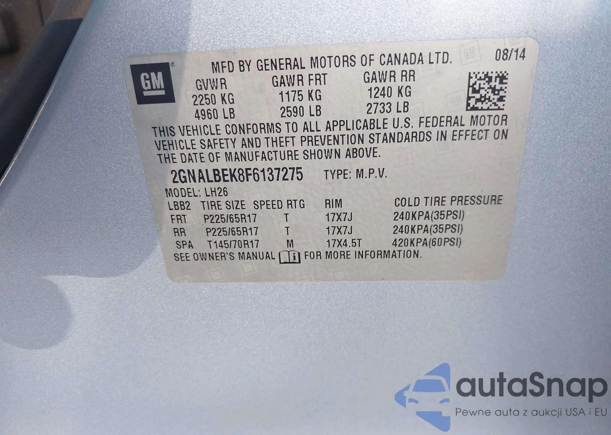 • VIN 2GNALBEK8F6137275