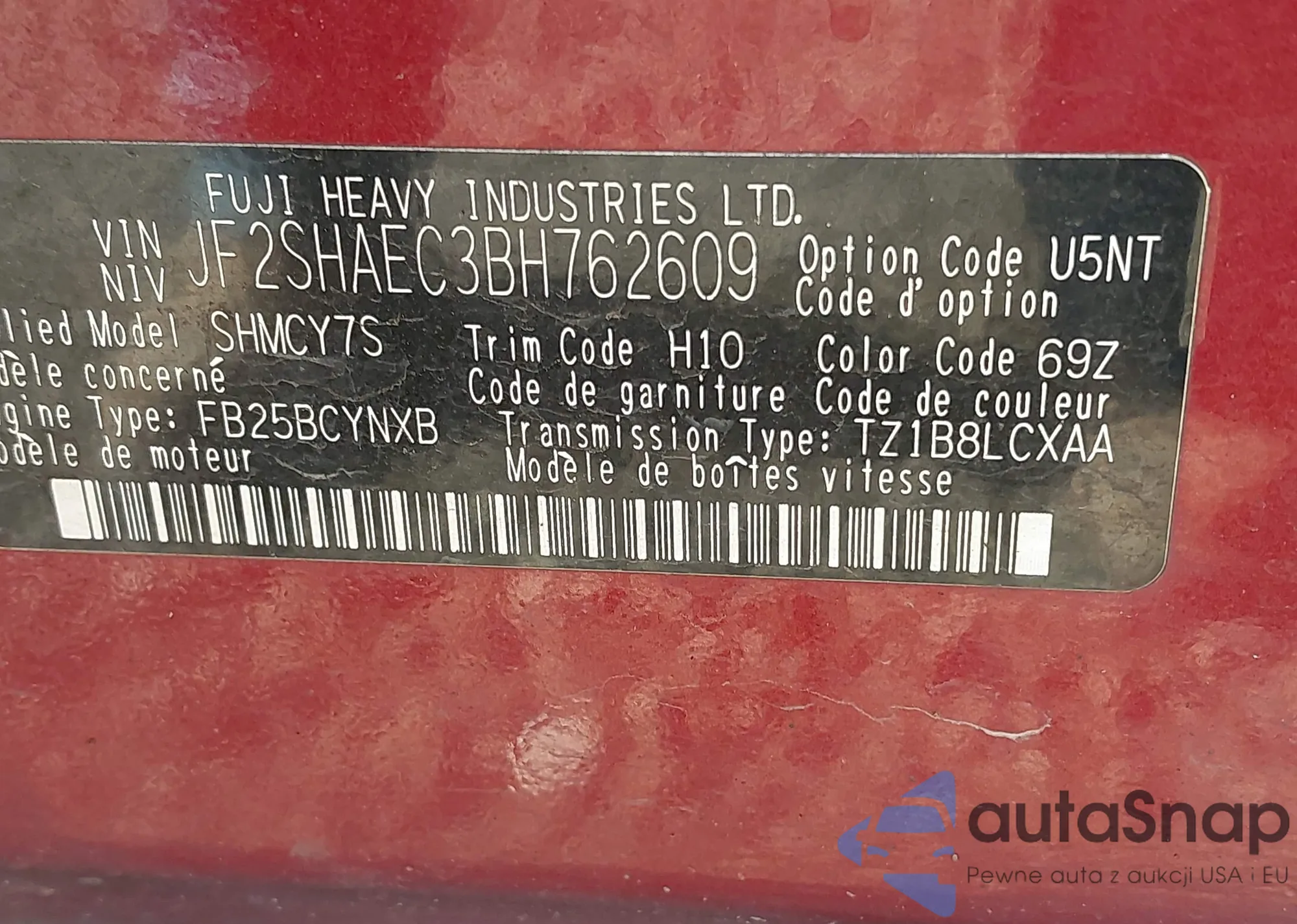• VIN JF2SHAEC3BH762609