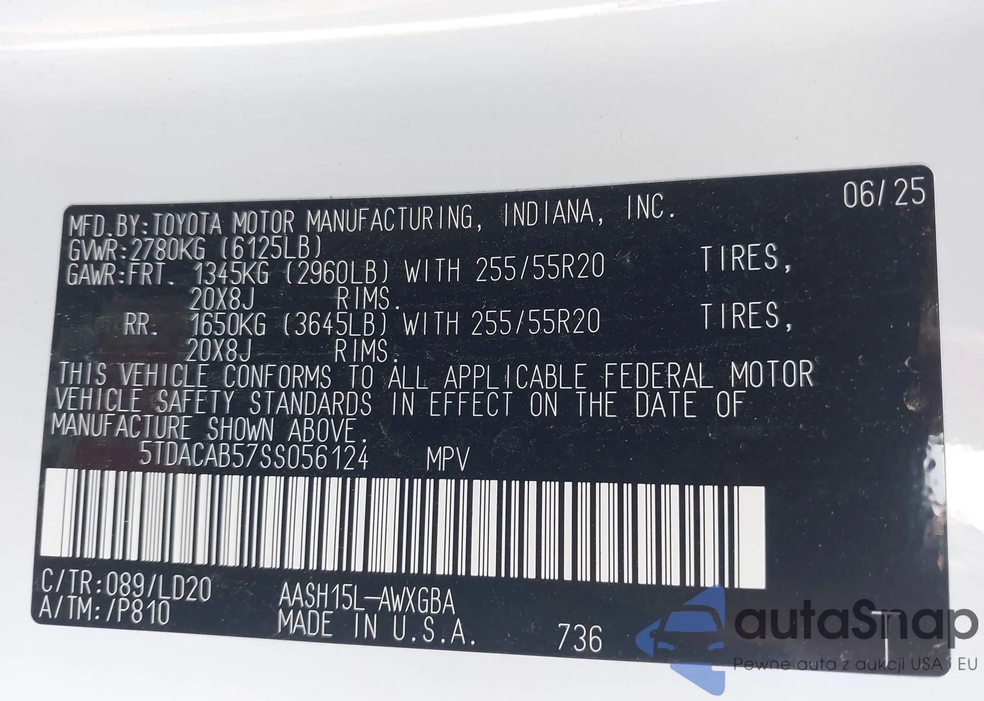 LOT: 43337777 VIN: SHSRD78873U111819