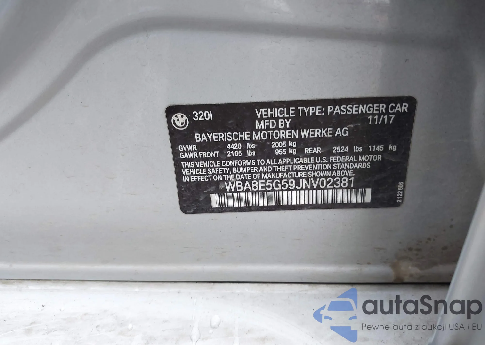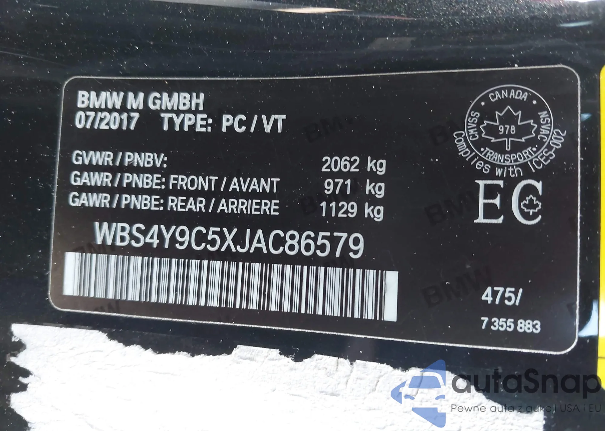 LOT: 43330504 VIN: WBS4Y9C5XJAC86579
