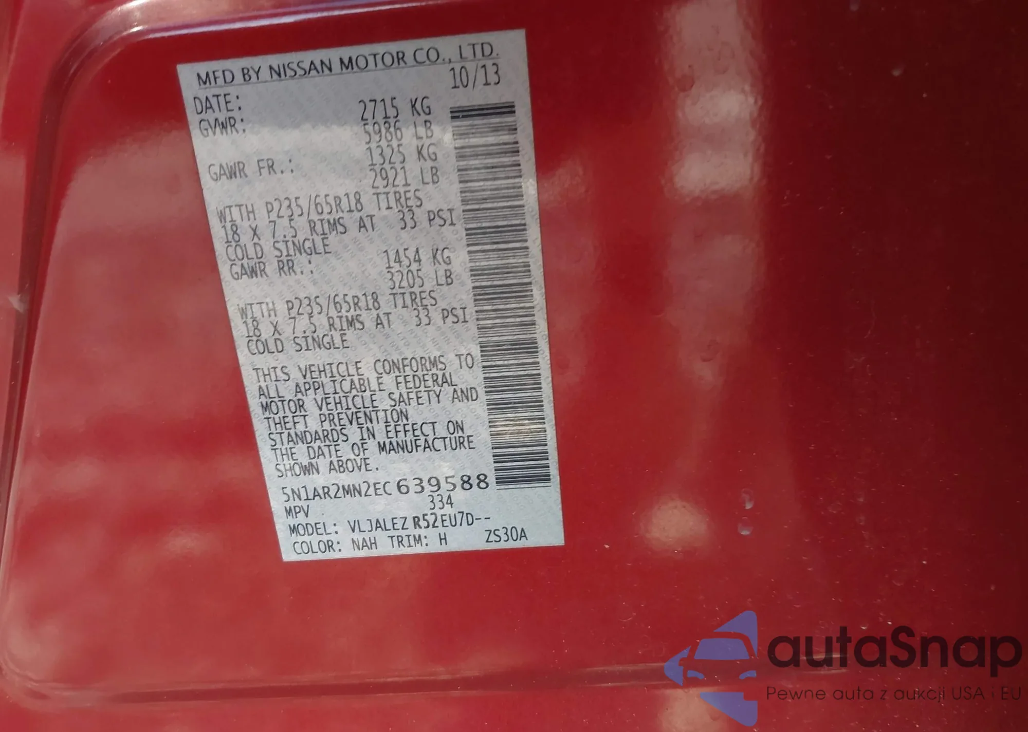 LOT: 43296827 VIN: 5N1AR2MN2EC639588