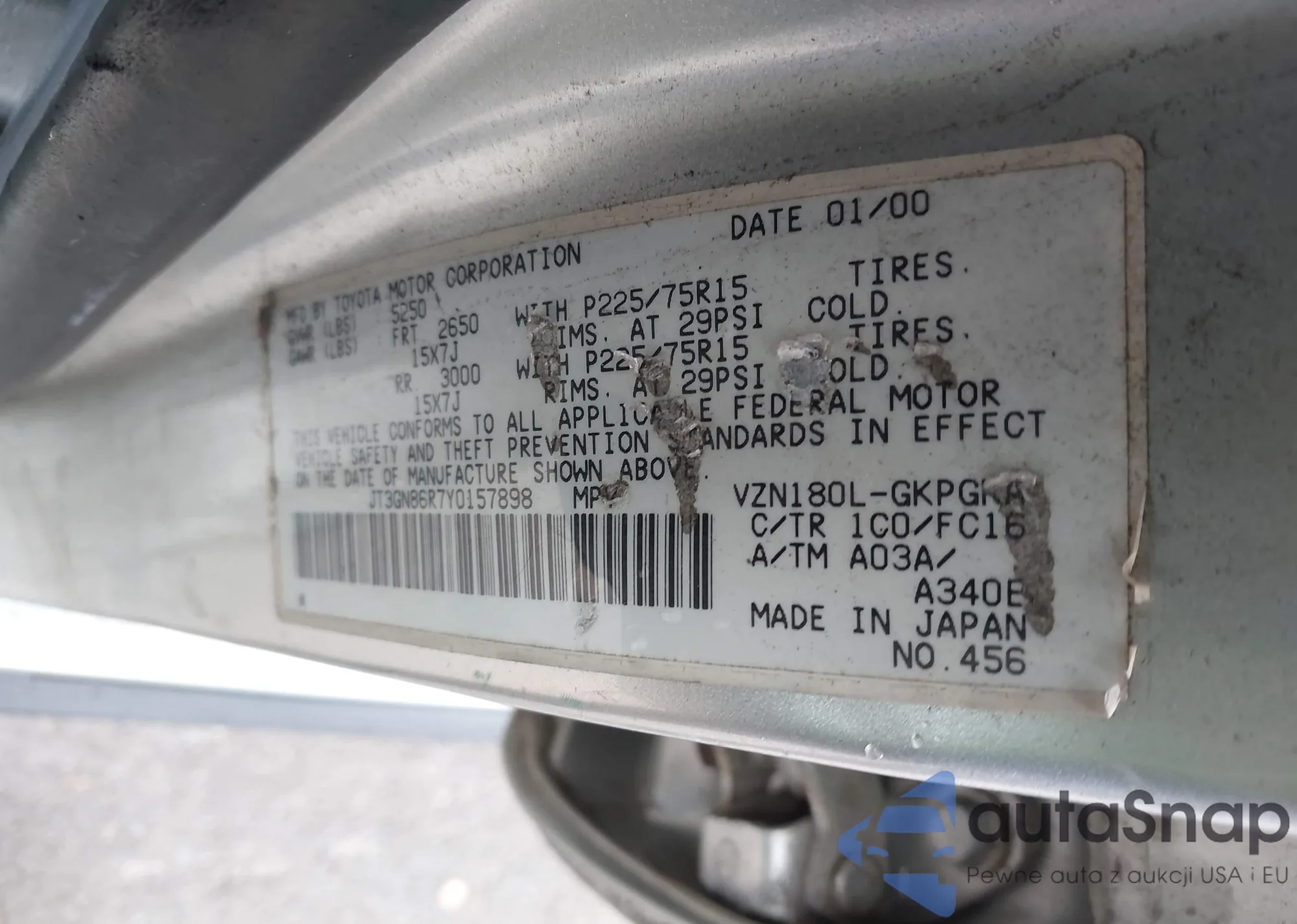 LOT: 42978122 VIN: JT3GN86R7Y0157898