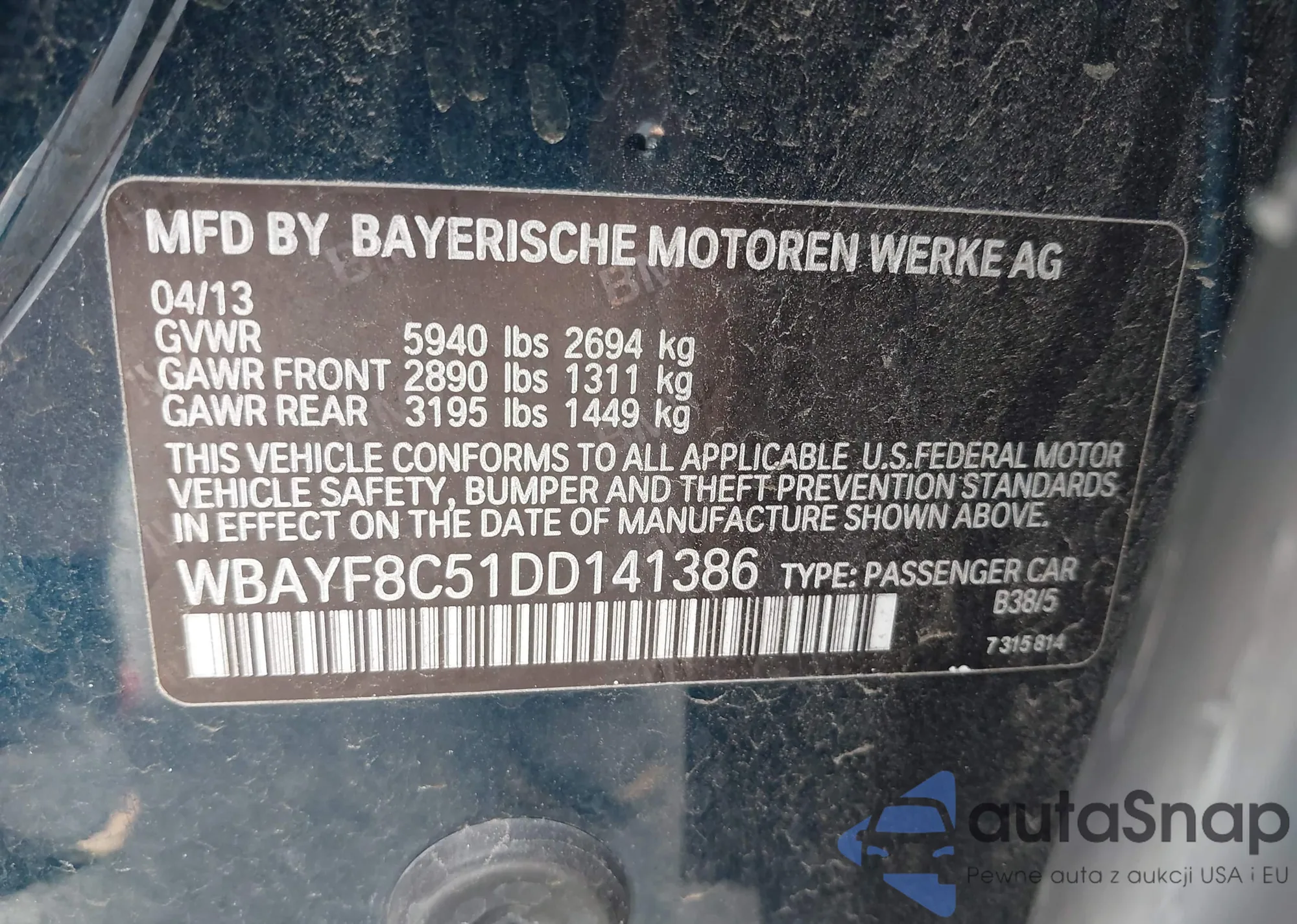 • VIN WBAYF8C51DD141386