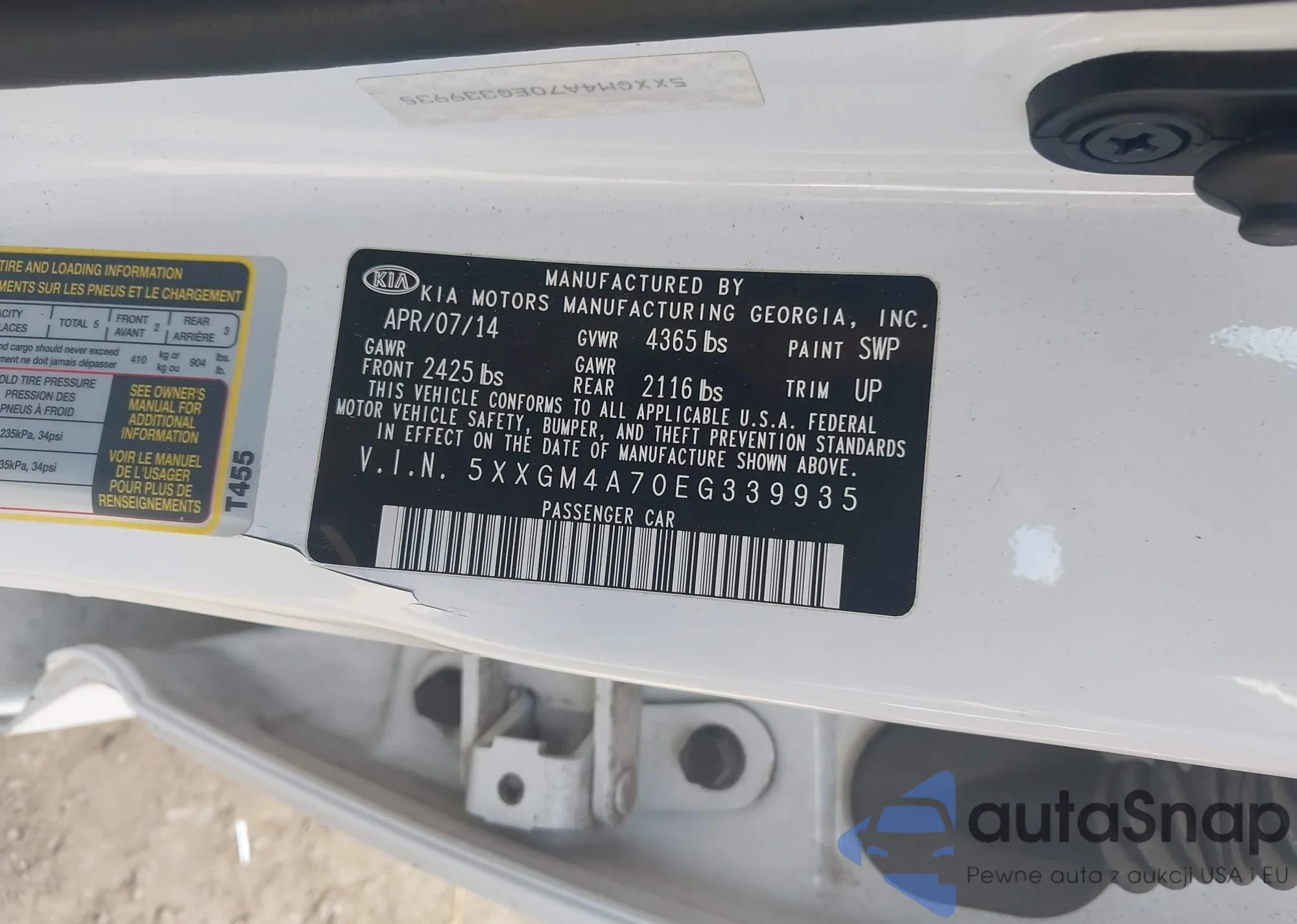 LOT: 43459685 VIN: 5XXGM4A70EG339935