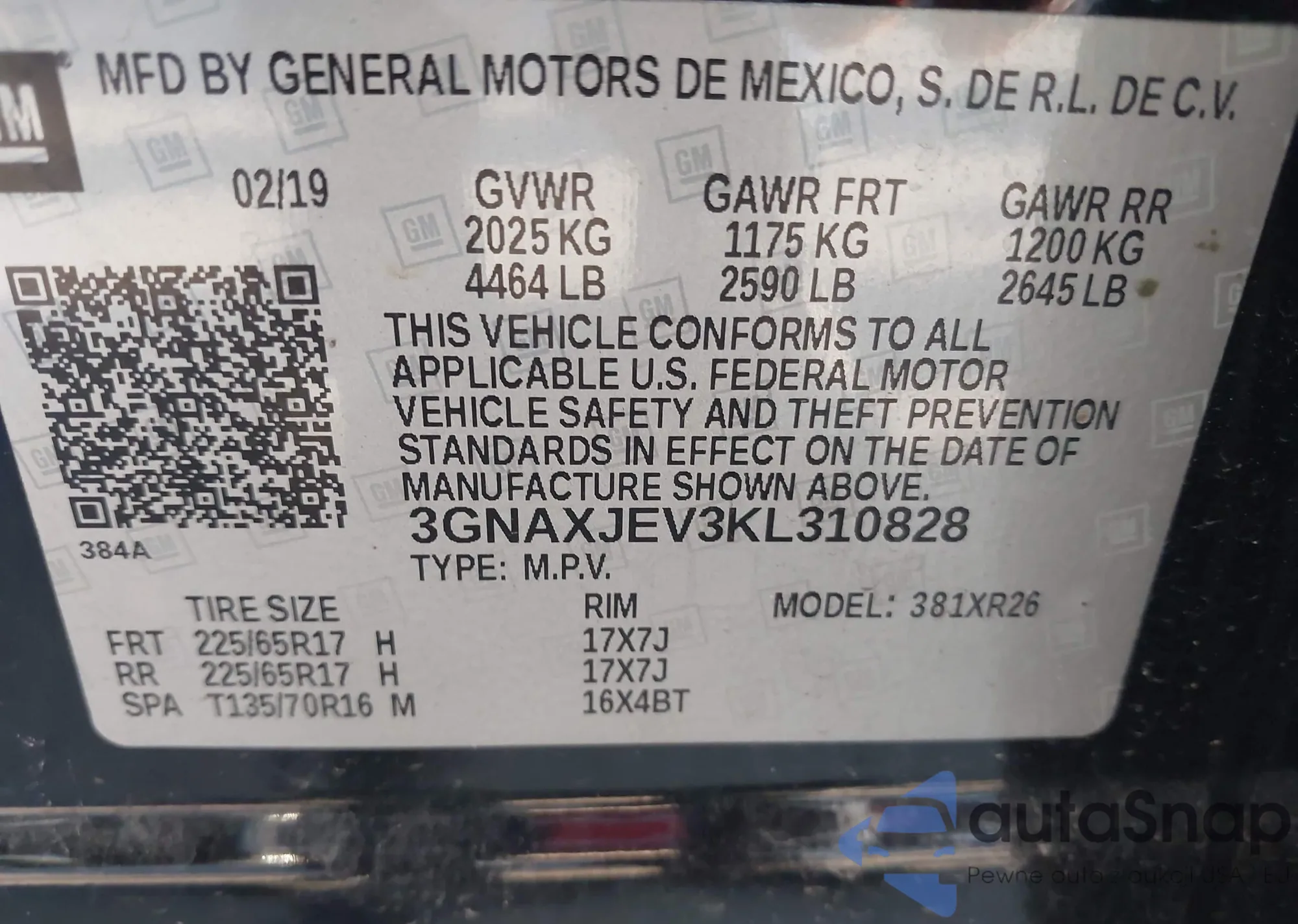 LOT: 43636420 VIN: 3GNBABDB6AS507662