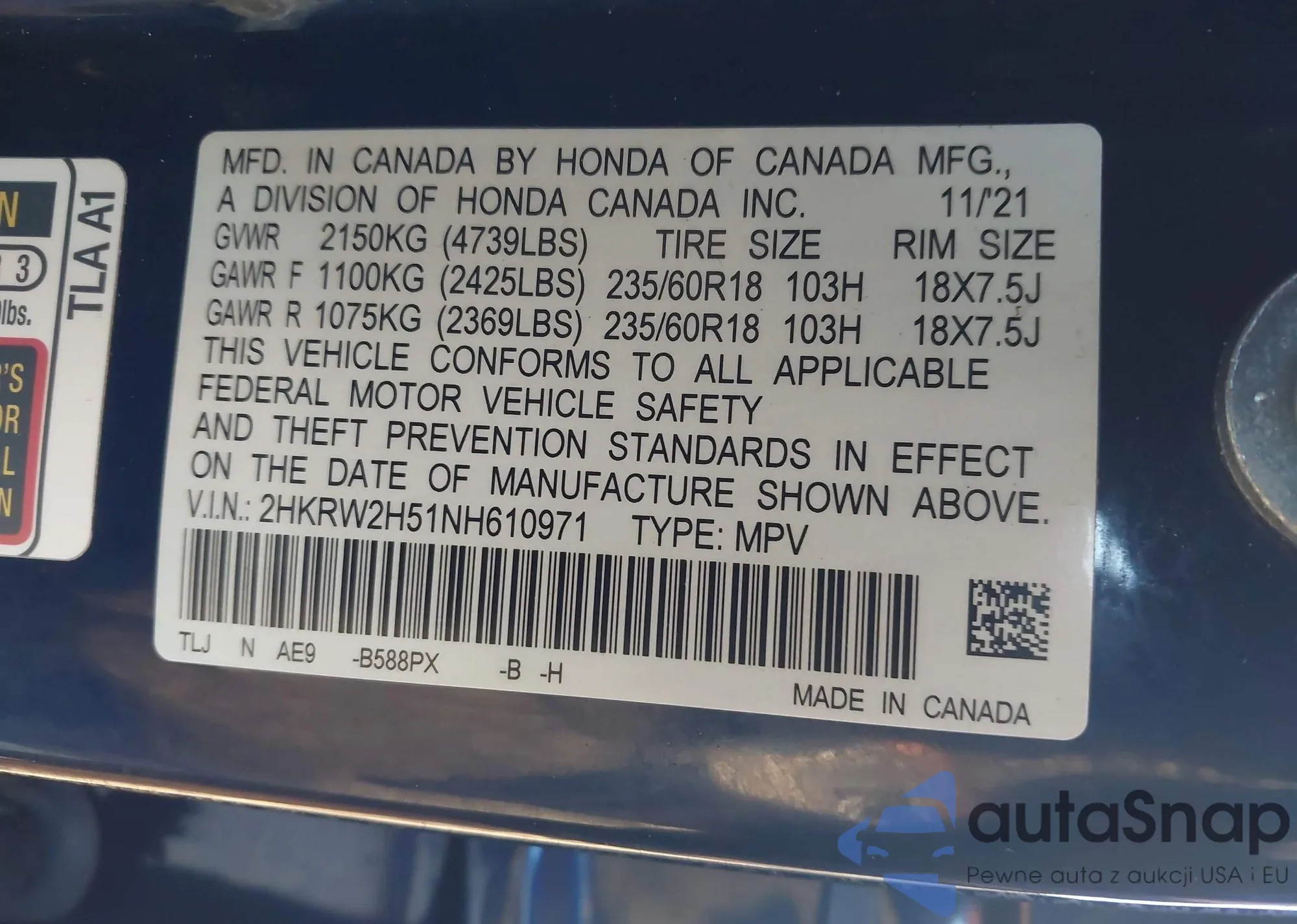 LOT: 42850205 VIN: JHMGE8H5XDC017017