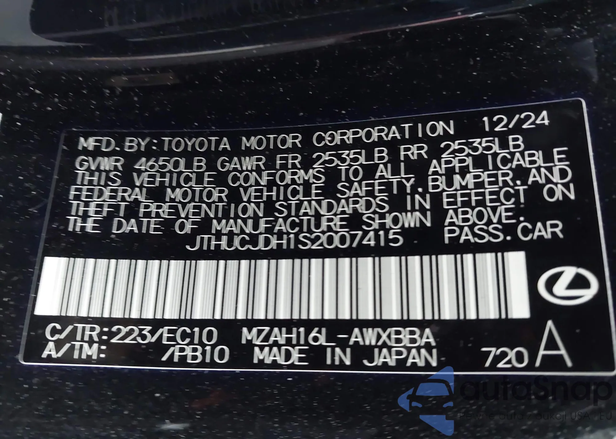 LOT: 43521389 VIN: JTHUCJDH1S2007415