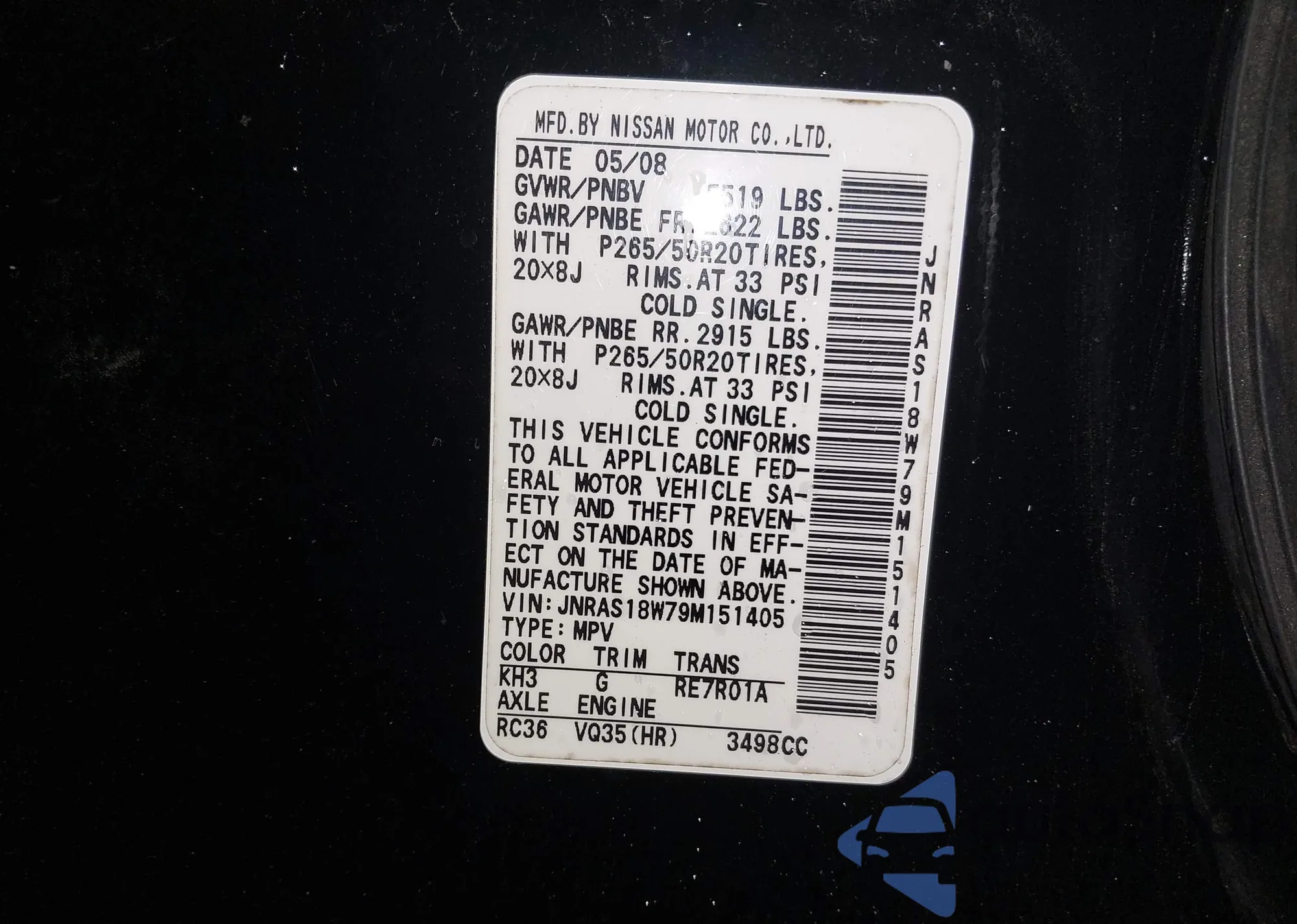 LOT: 41046803 VIN: JNRAS18W79M151405