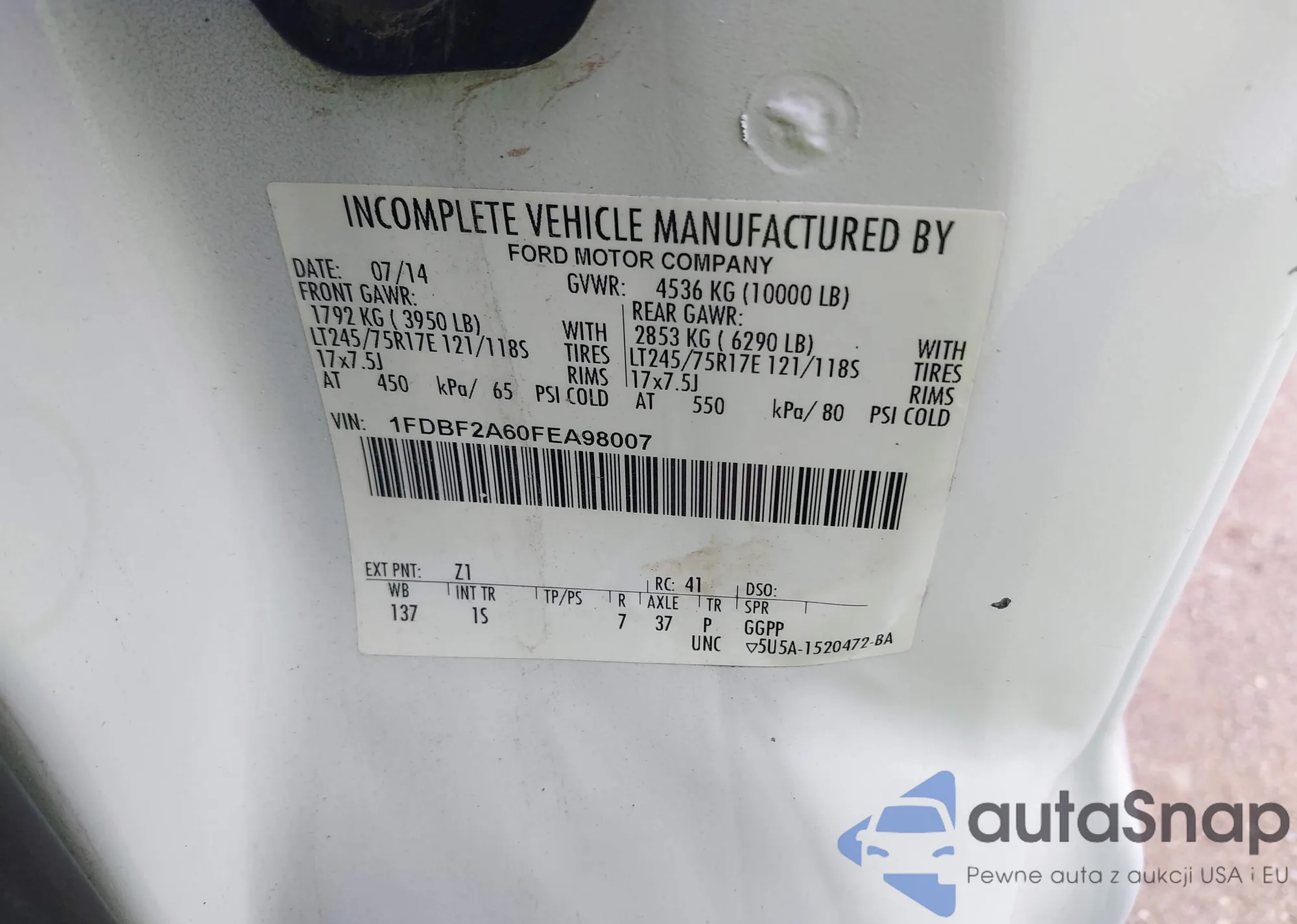 LOT: 42929248 VIN: 1FDBF2A60FEA98007