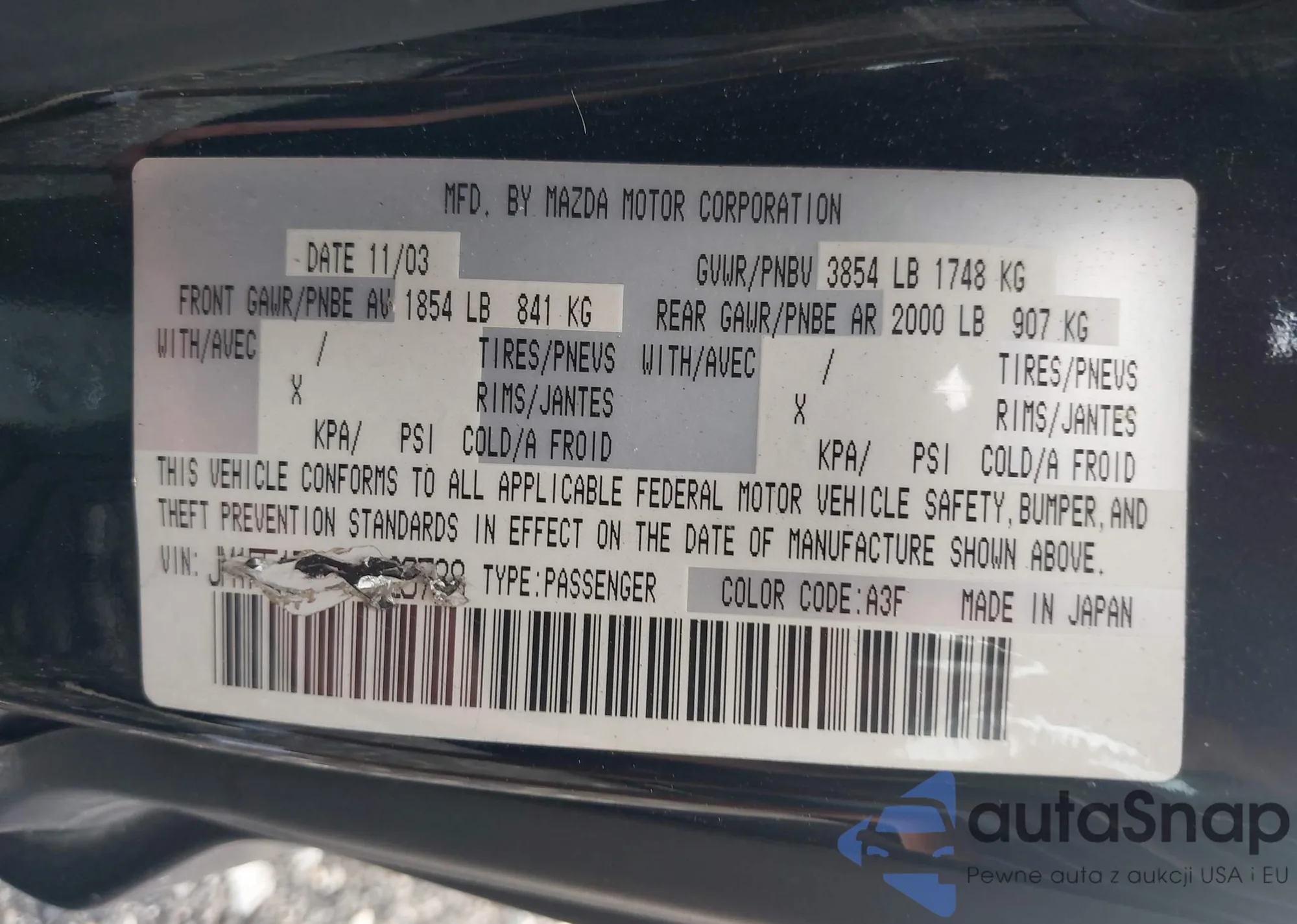 LOT: 42981707 VIN: JM1FE173960206010