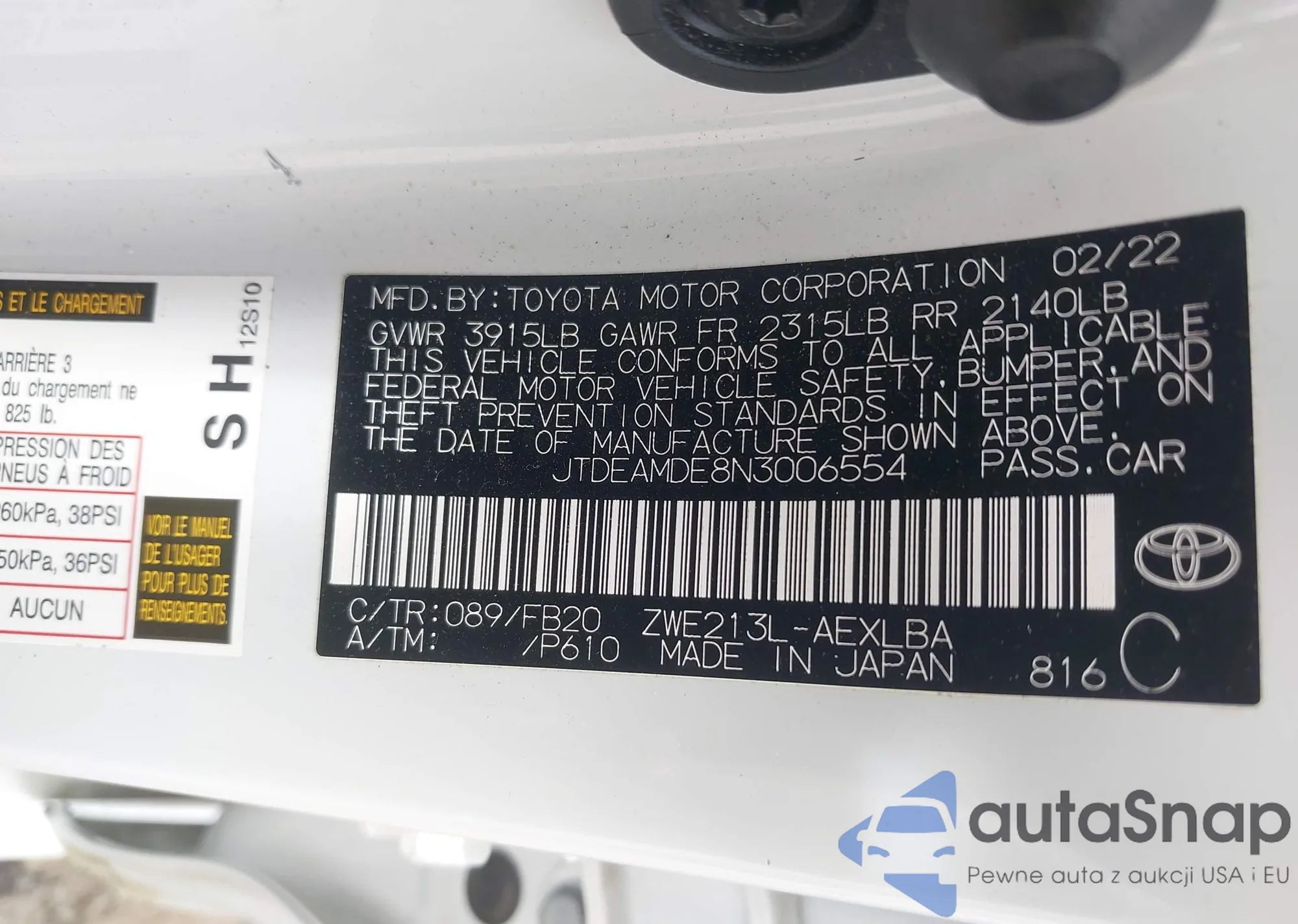 LOT: 43026456 VIN: JTDEAMDE8N3006554