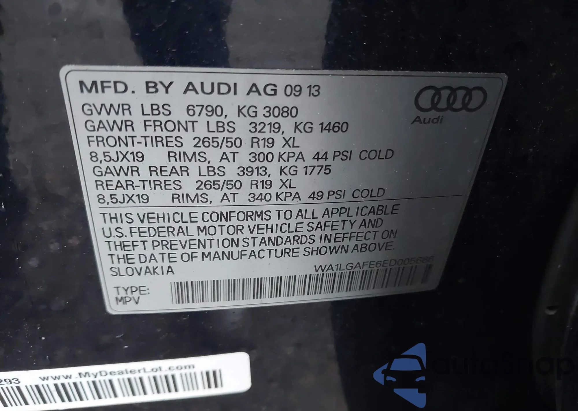 LOT: 43368573 VIN: WA1LGAFE6ED005666