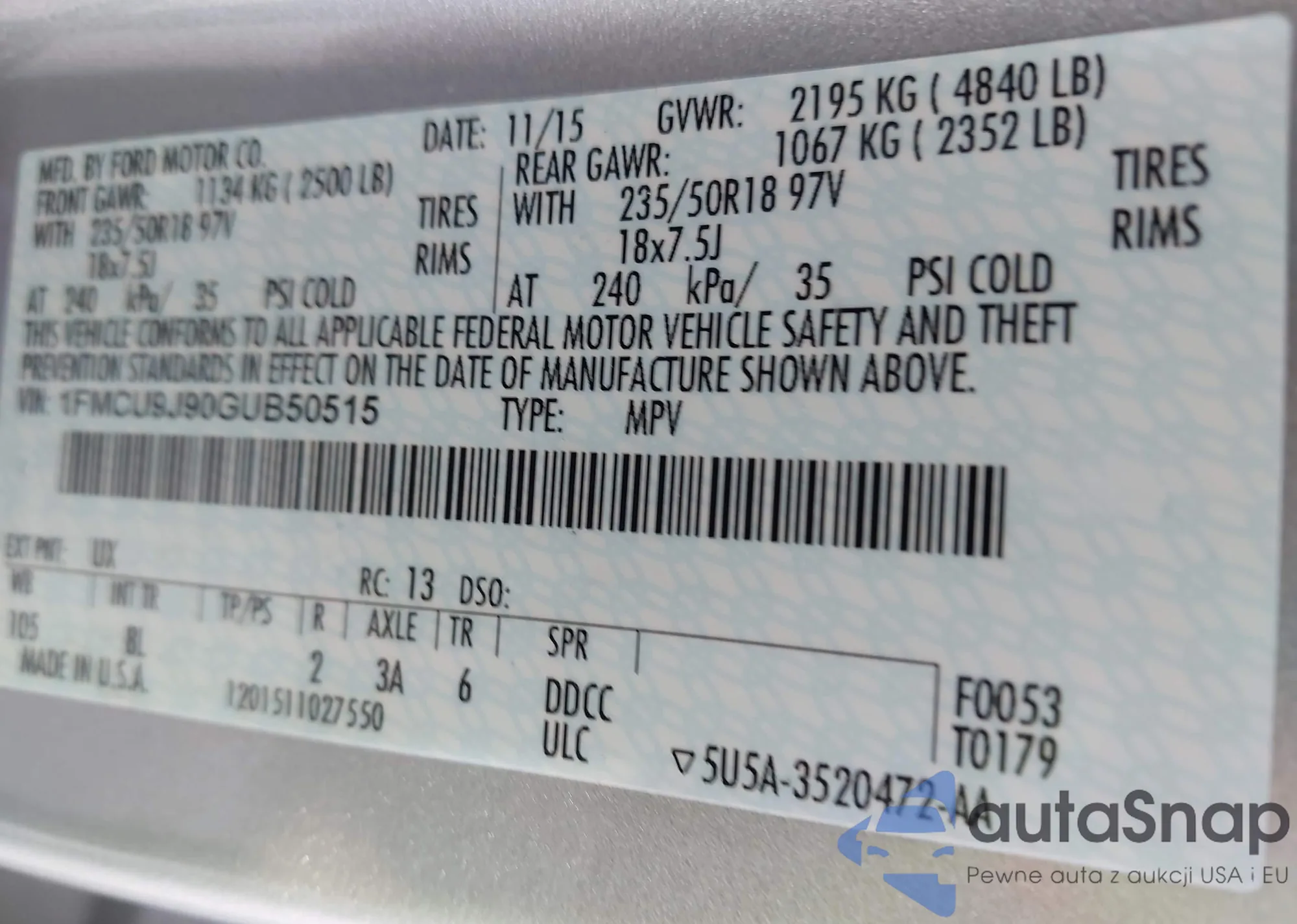 • VIN 3GKALMEV0NL106356