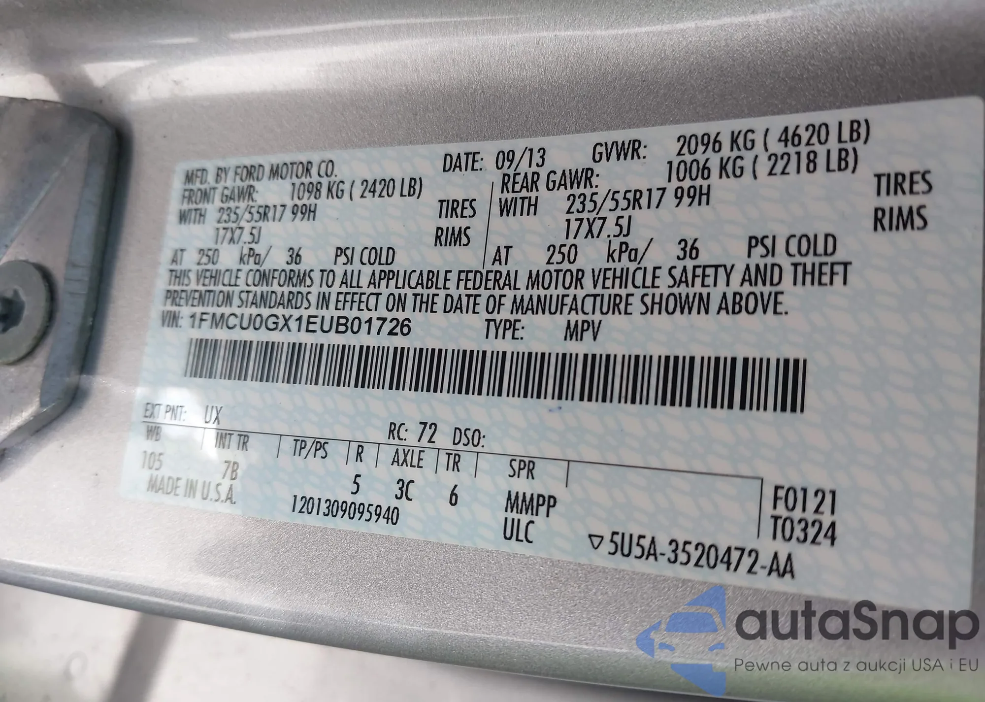 LOT: 43215216 VIN: 4T1BF1FKXEU392289