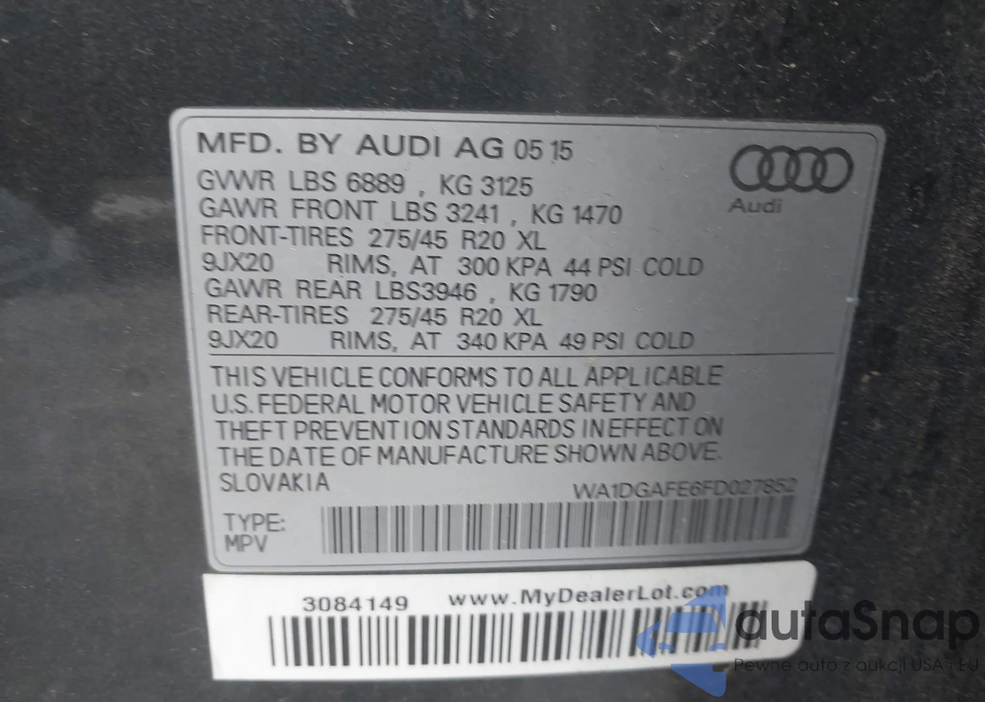 LOT: 42885148 VIN: WA1DGAFE6FD027852