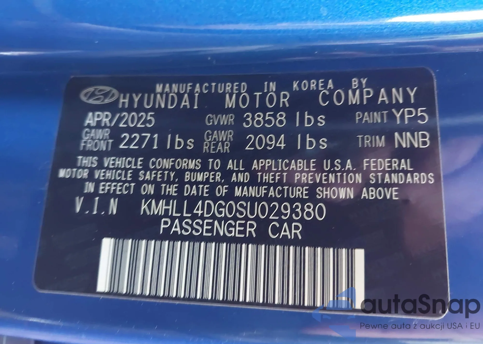 • VIN KMHLL4DG0SU029380