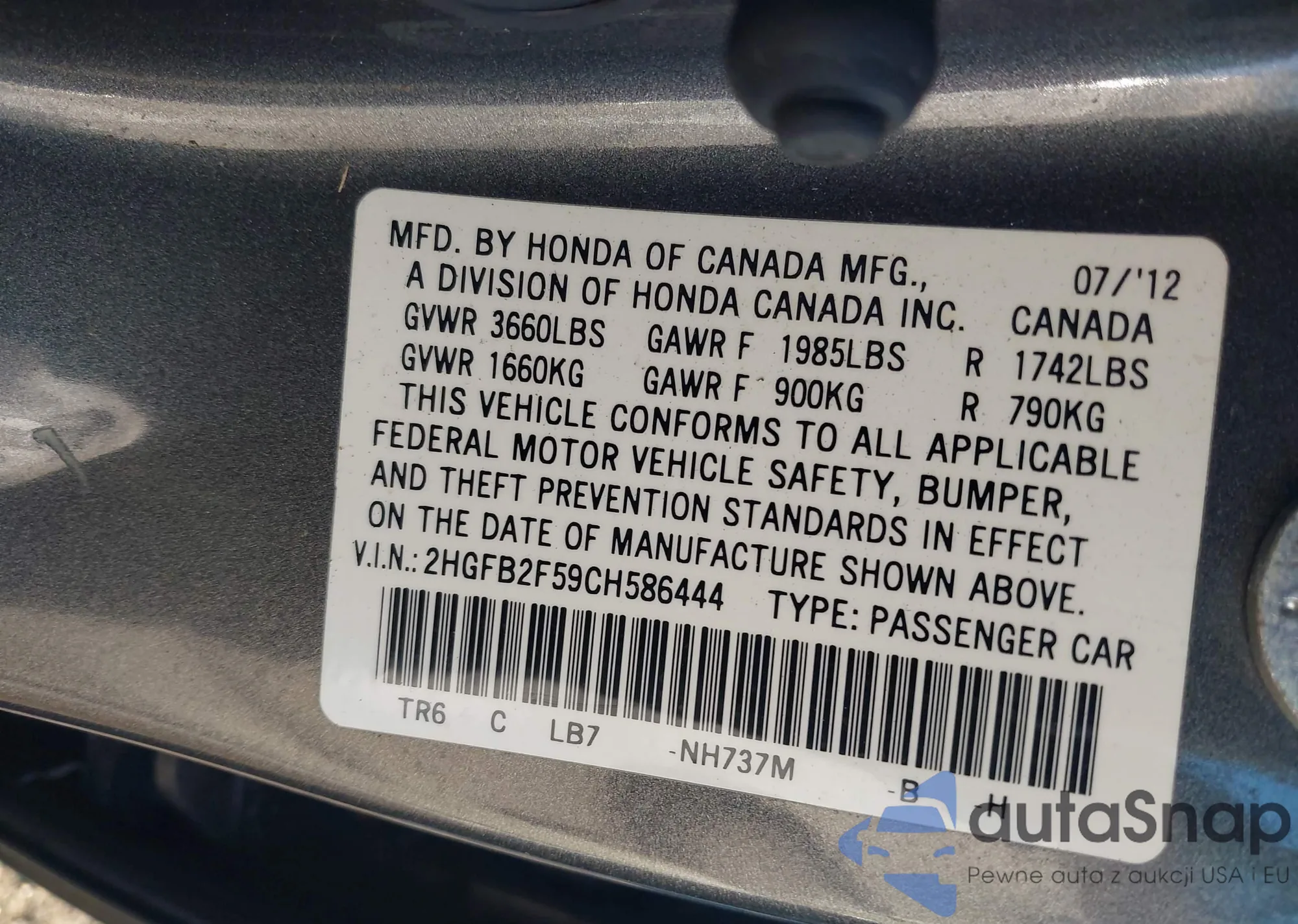 • VIN 2HGFB2F59CH586444