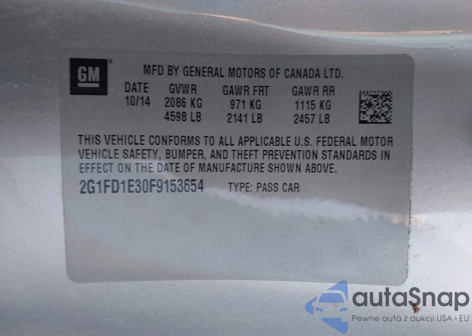 LOT: 43169570 VIN: 2G1FD1E30F9153654