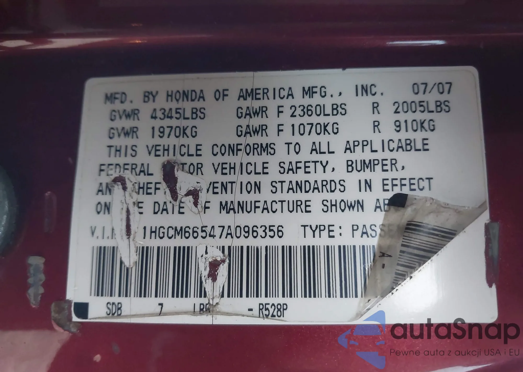 LOT: 43611830 VIN: 1HGCM56623A123325