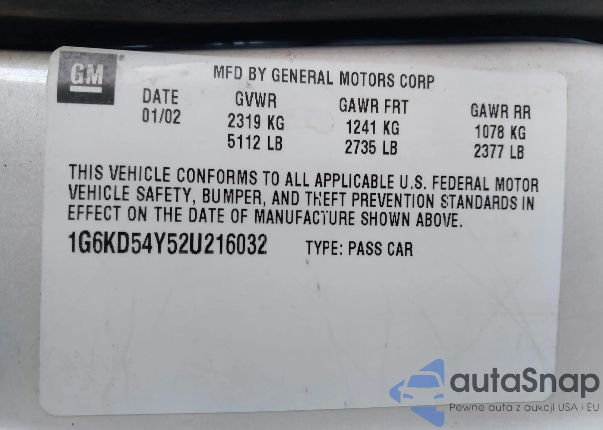 • VIN 1G6KD54Y52U216032