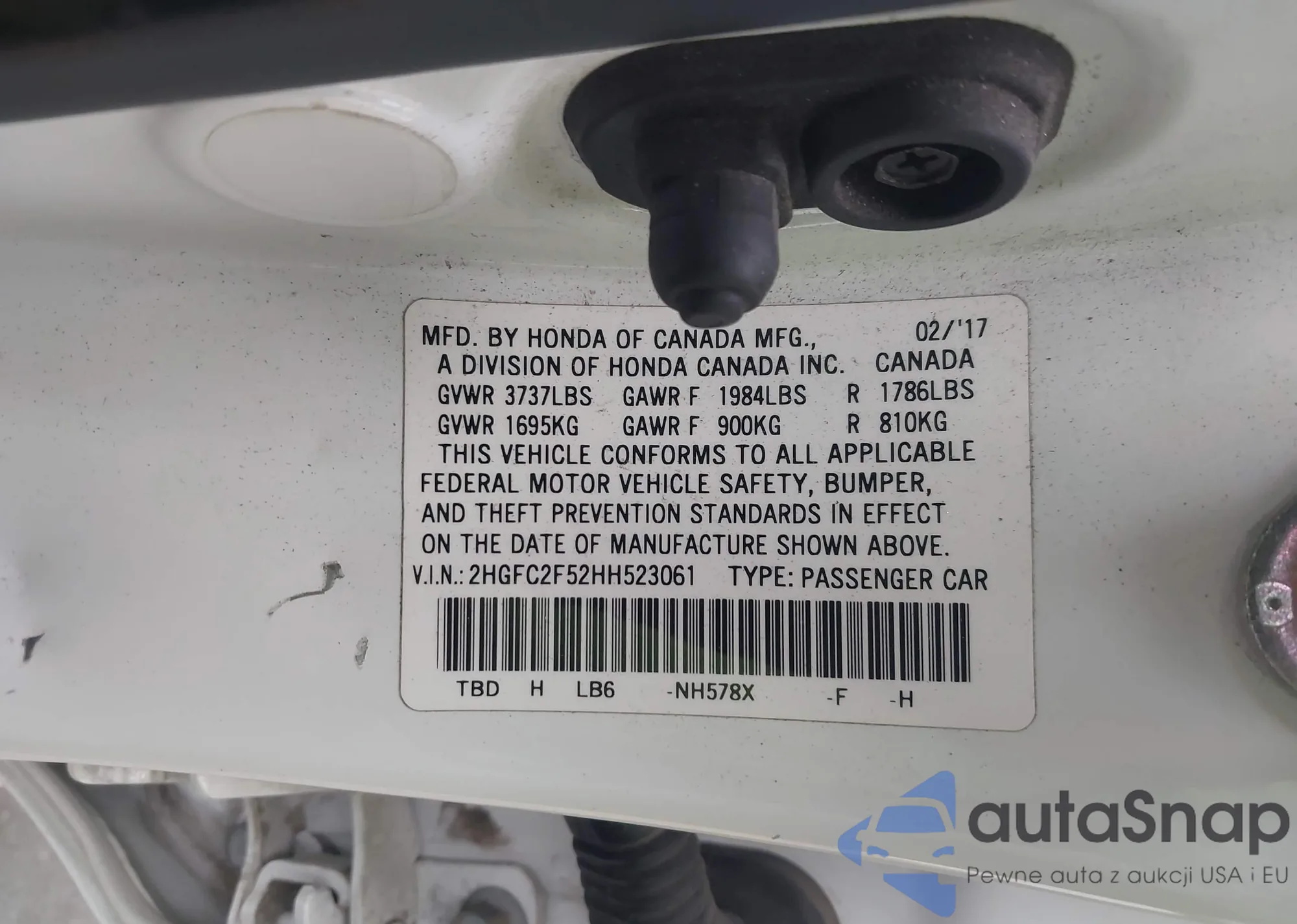 • VIN 2HGFC2F52HH523061