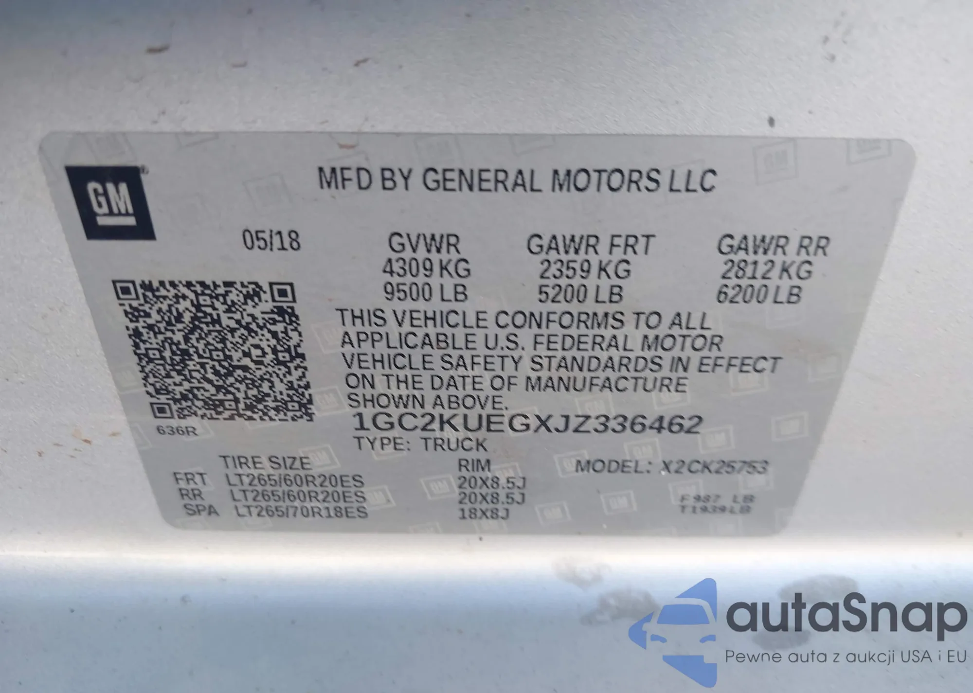 • VIN 1GC2KUEGXJZ336462