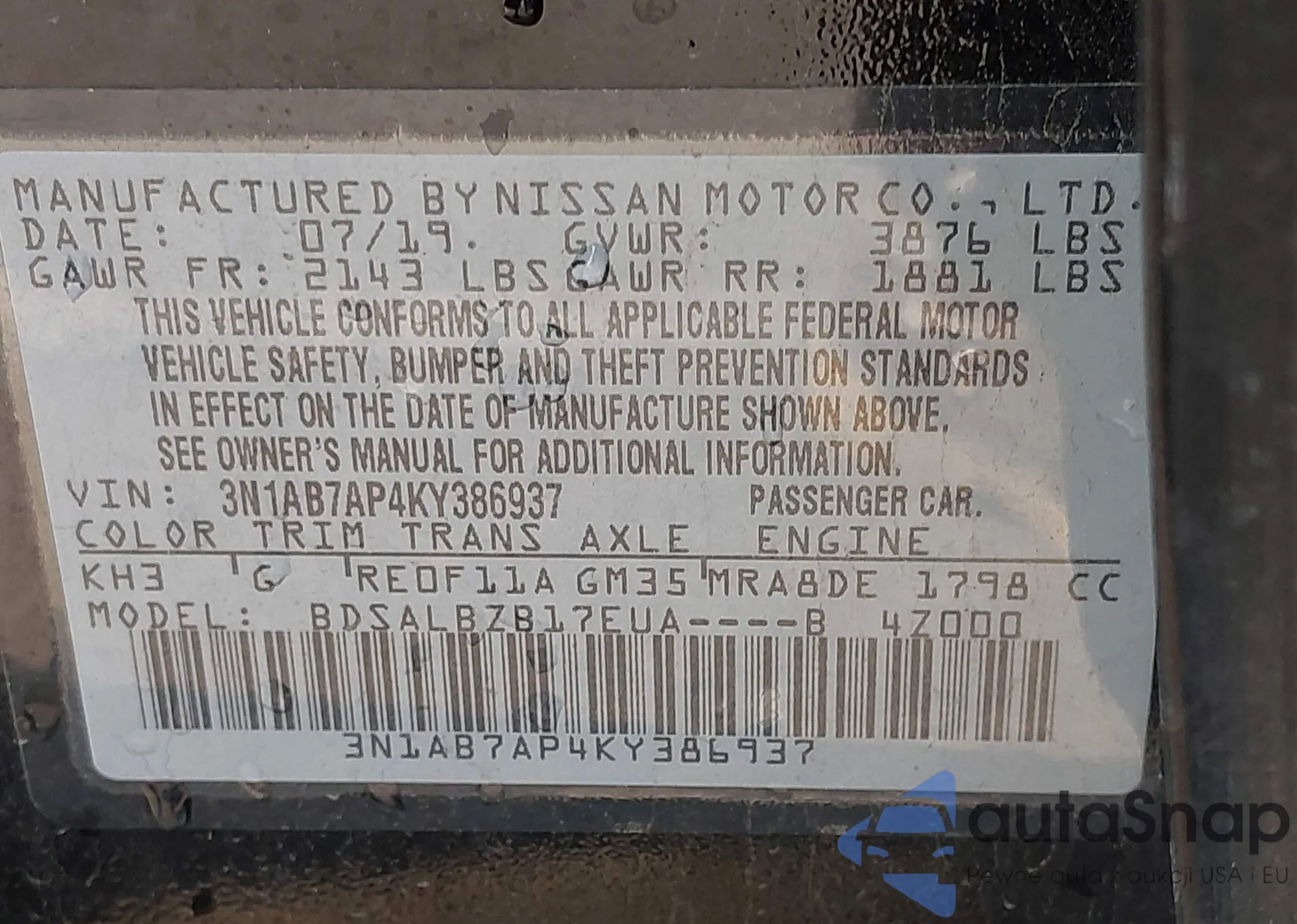 • VIN 3N1CN7AP1GL831719