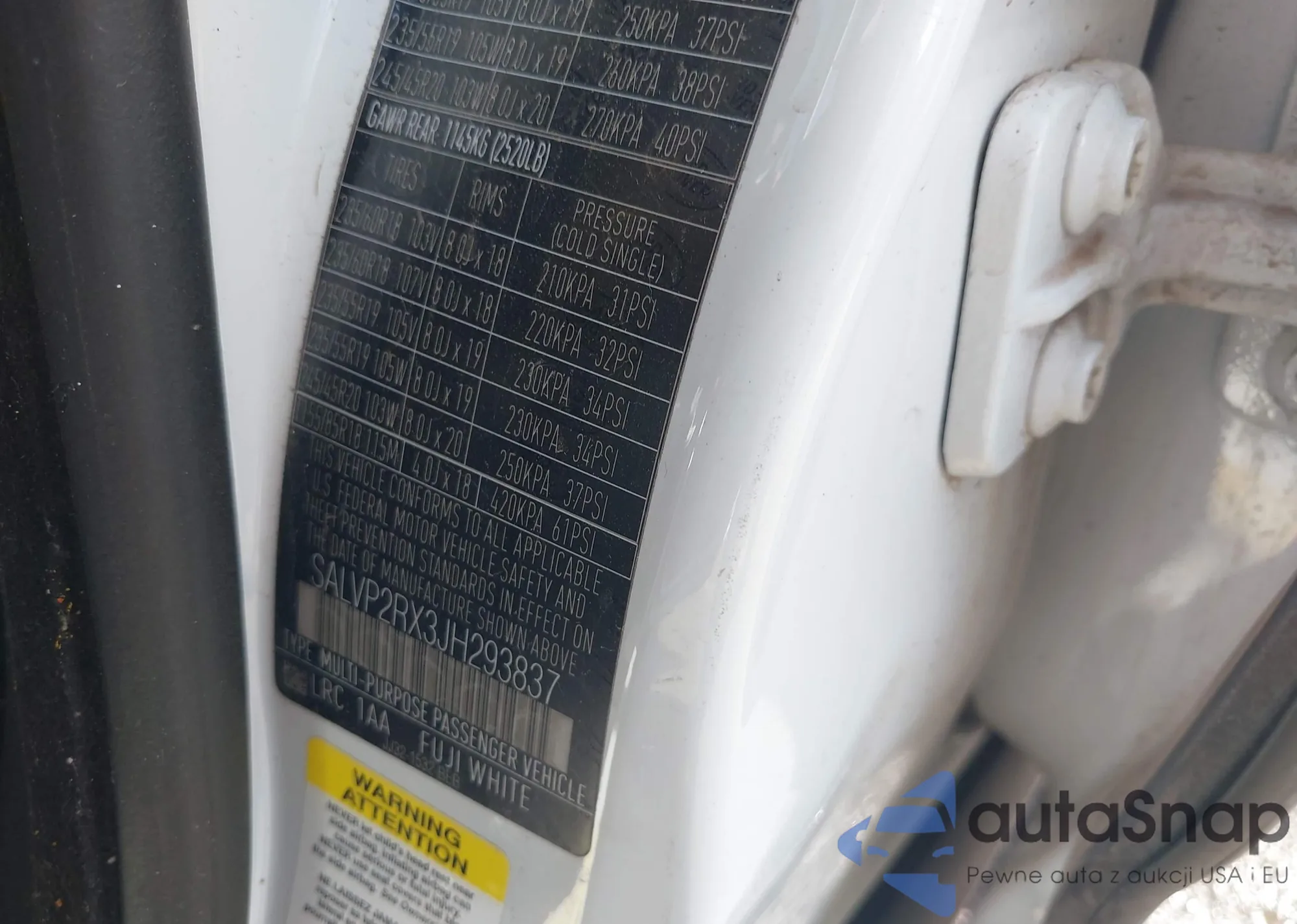 • VIN SALVP2RX3JH293837
