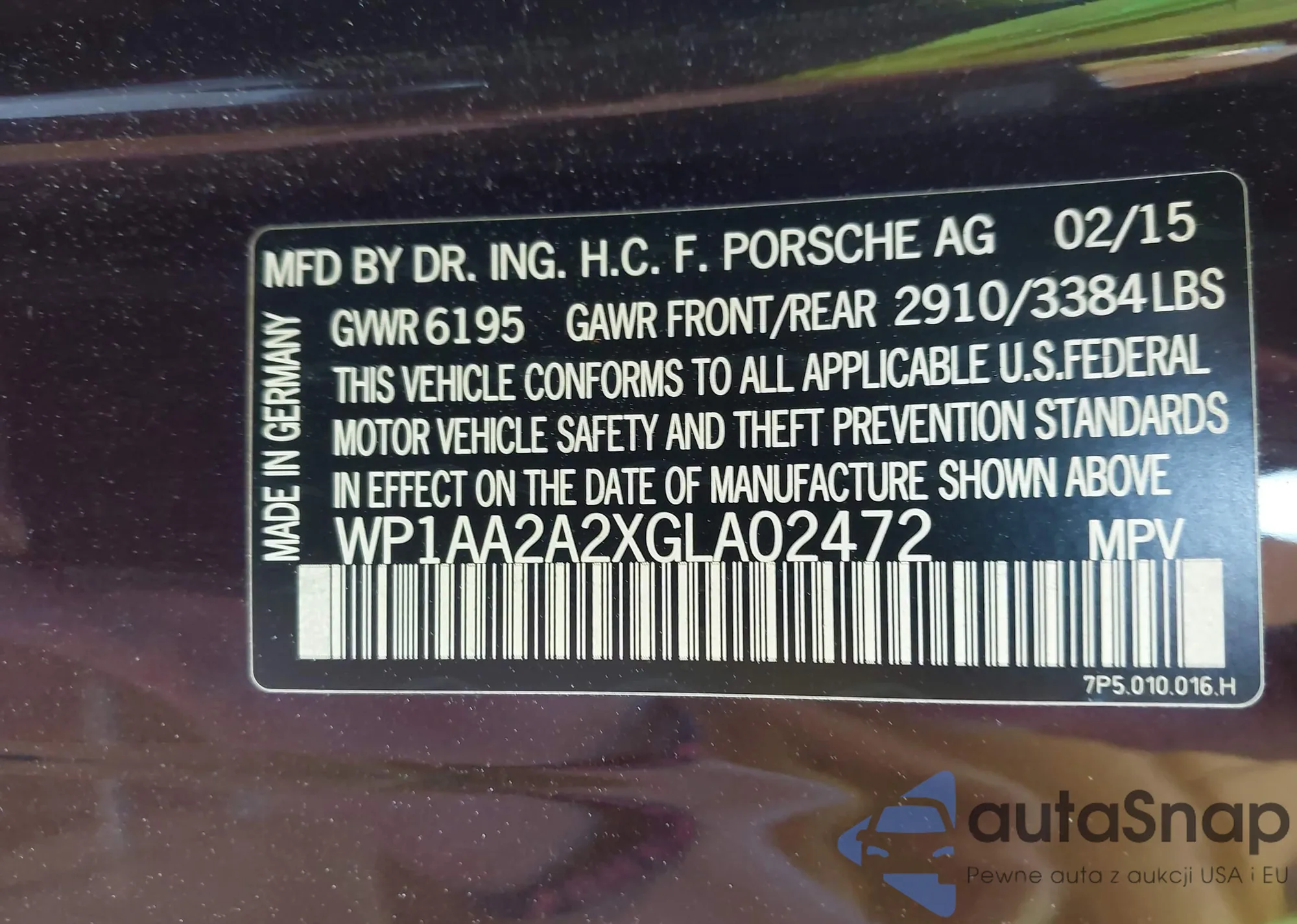 LOT: 43290751 VIN: WP1AA2A2XGLA02472