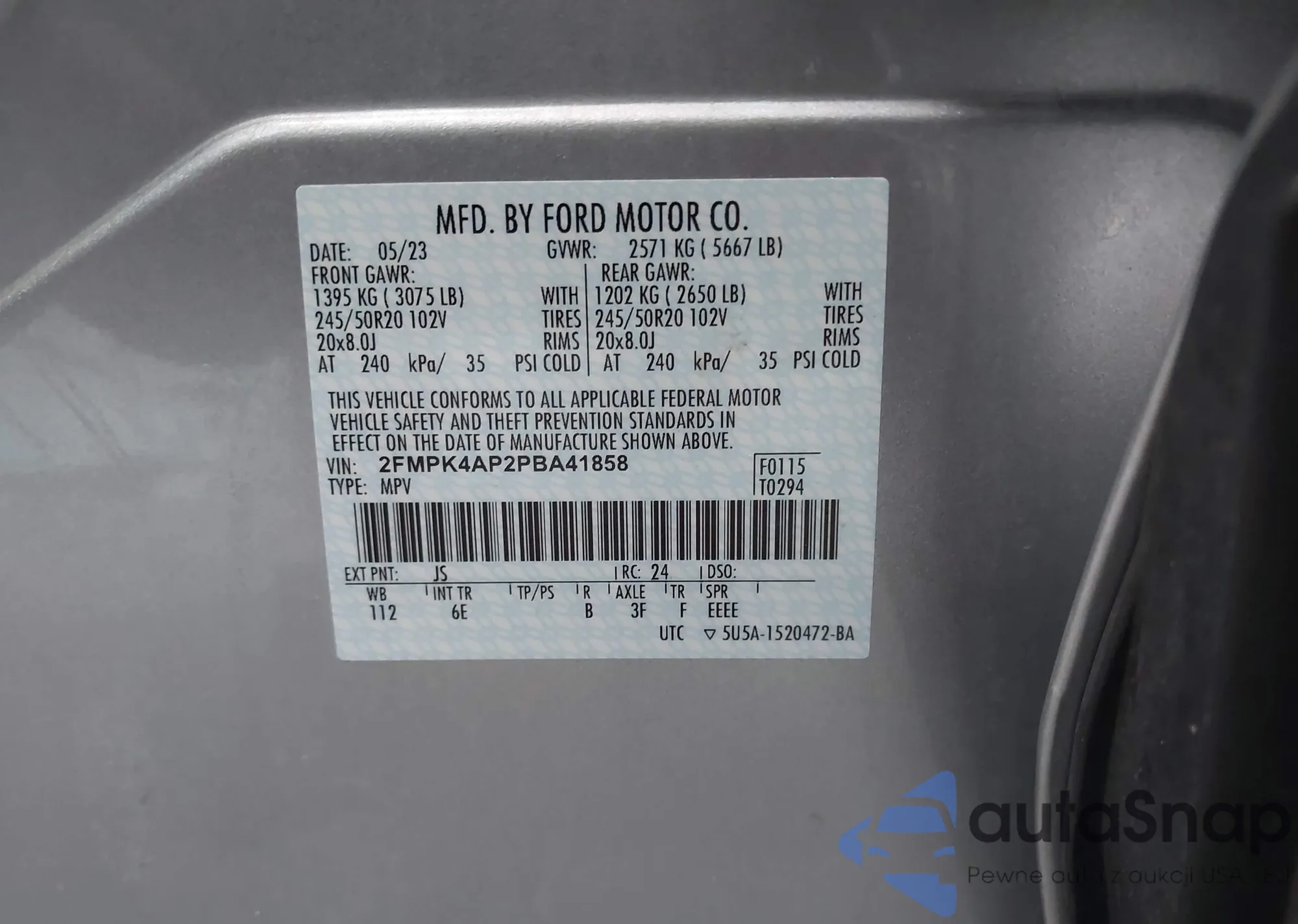• VIN 2FMPK4AP2PBA41858