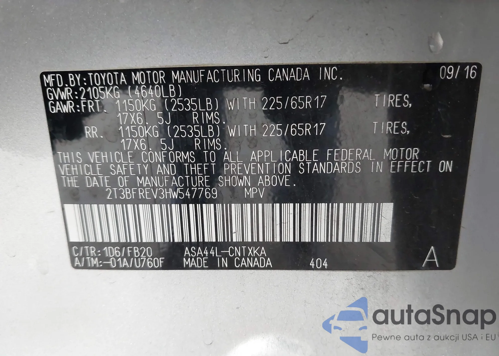 • VIN 2T3BFREV3HW547769