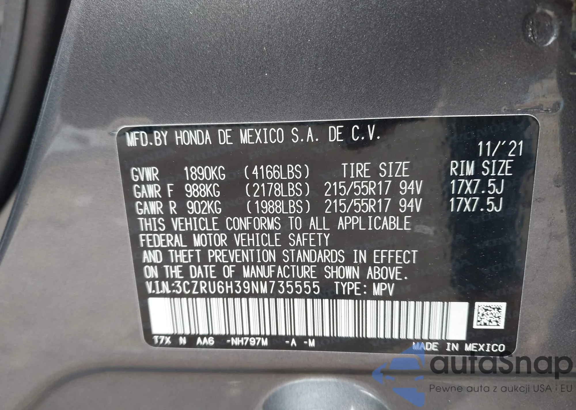 • VIN 3CZRU6H39NM735555