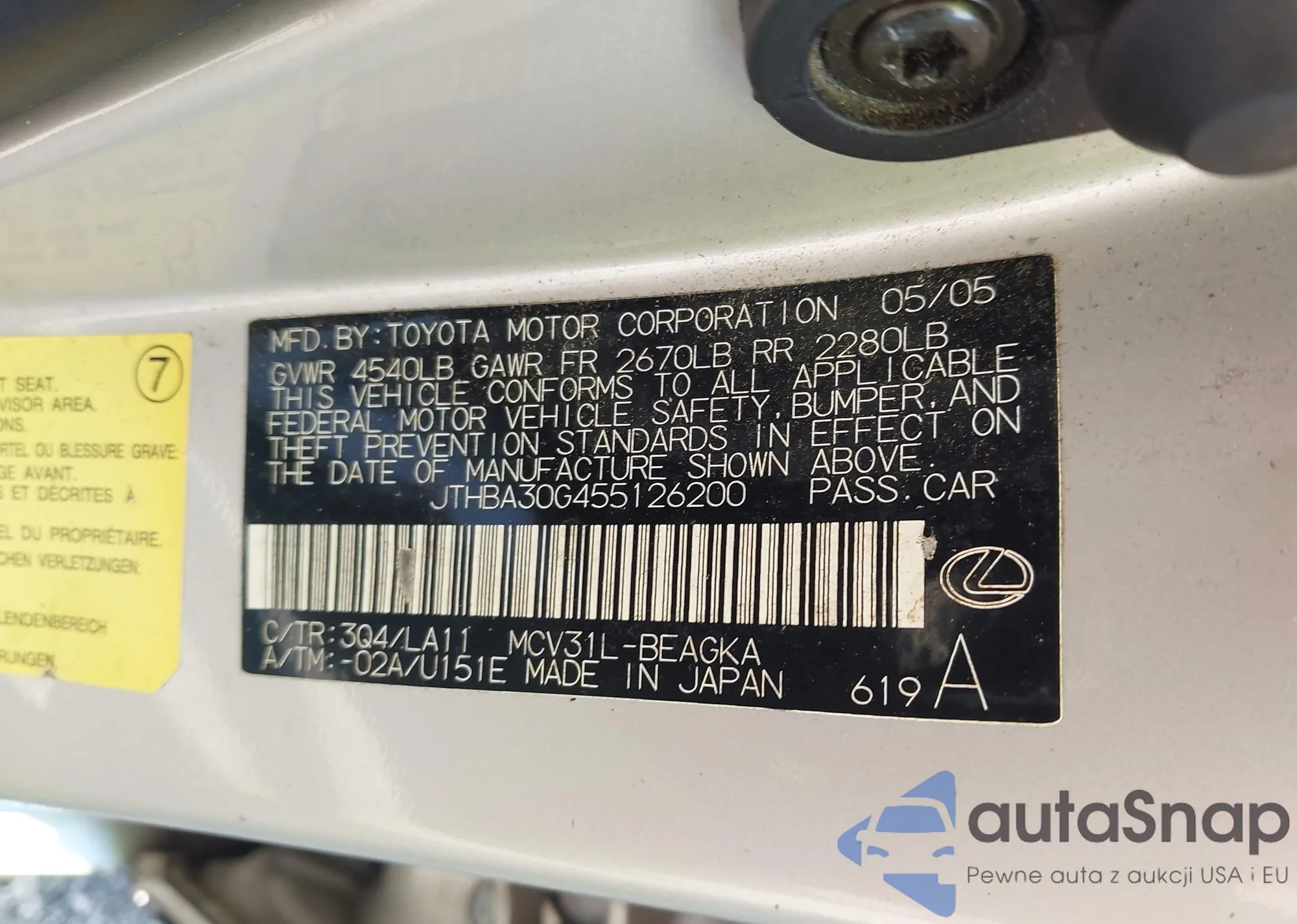 LOT: 43491775 VIN: JTJGJRDZ7L2145907