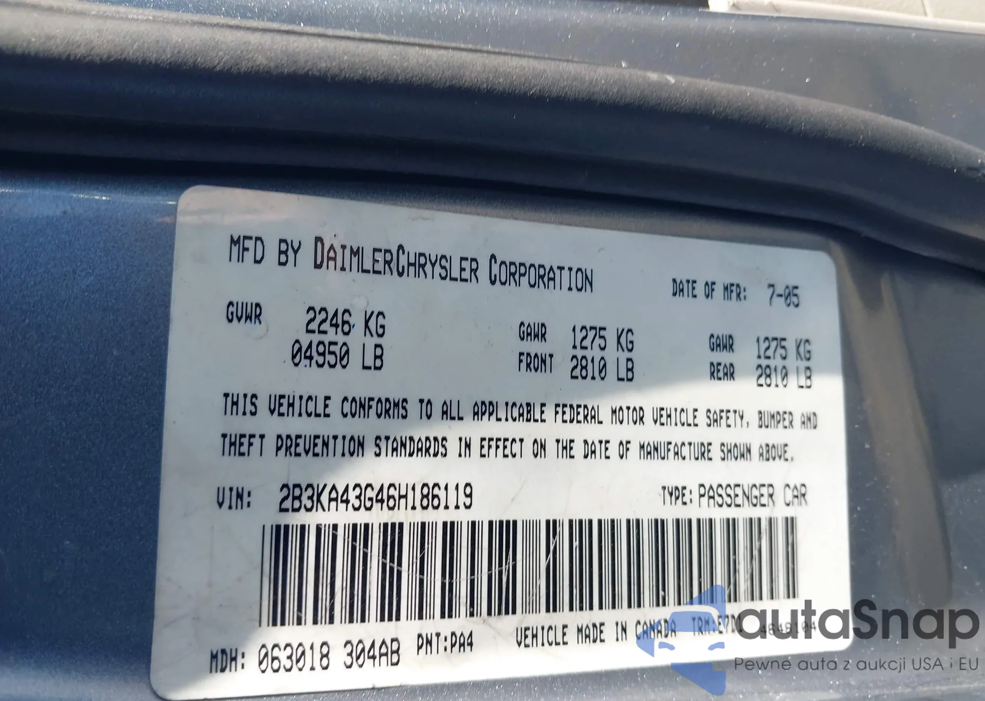 LOT: 43301472 VIN: JHMCP26828C065684