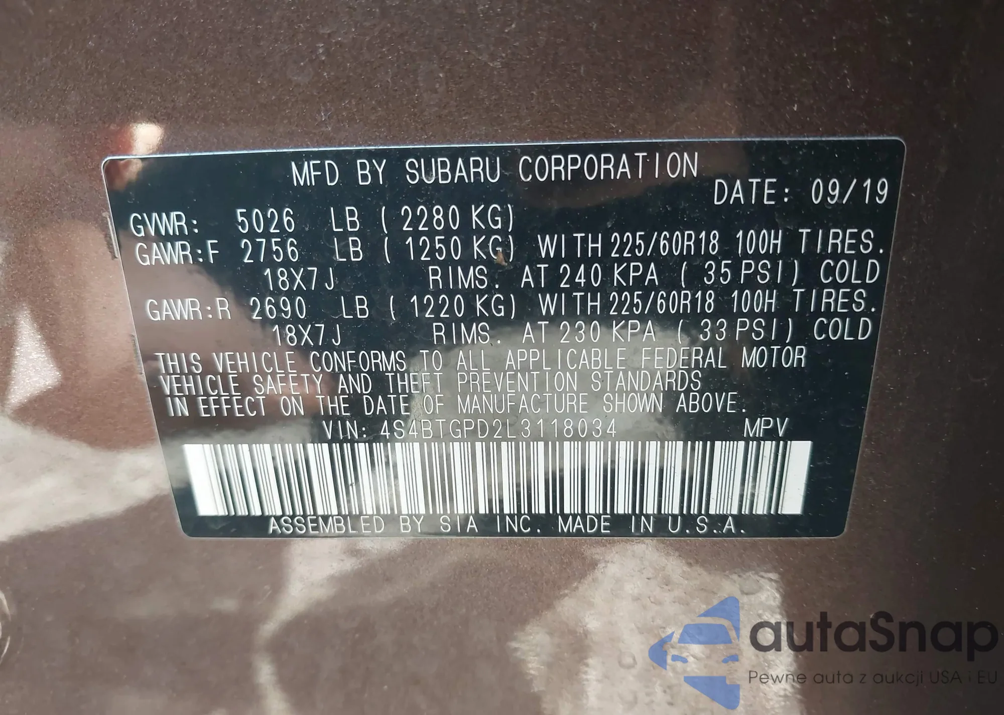• VIN 4S4BTGPD2L3118034