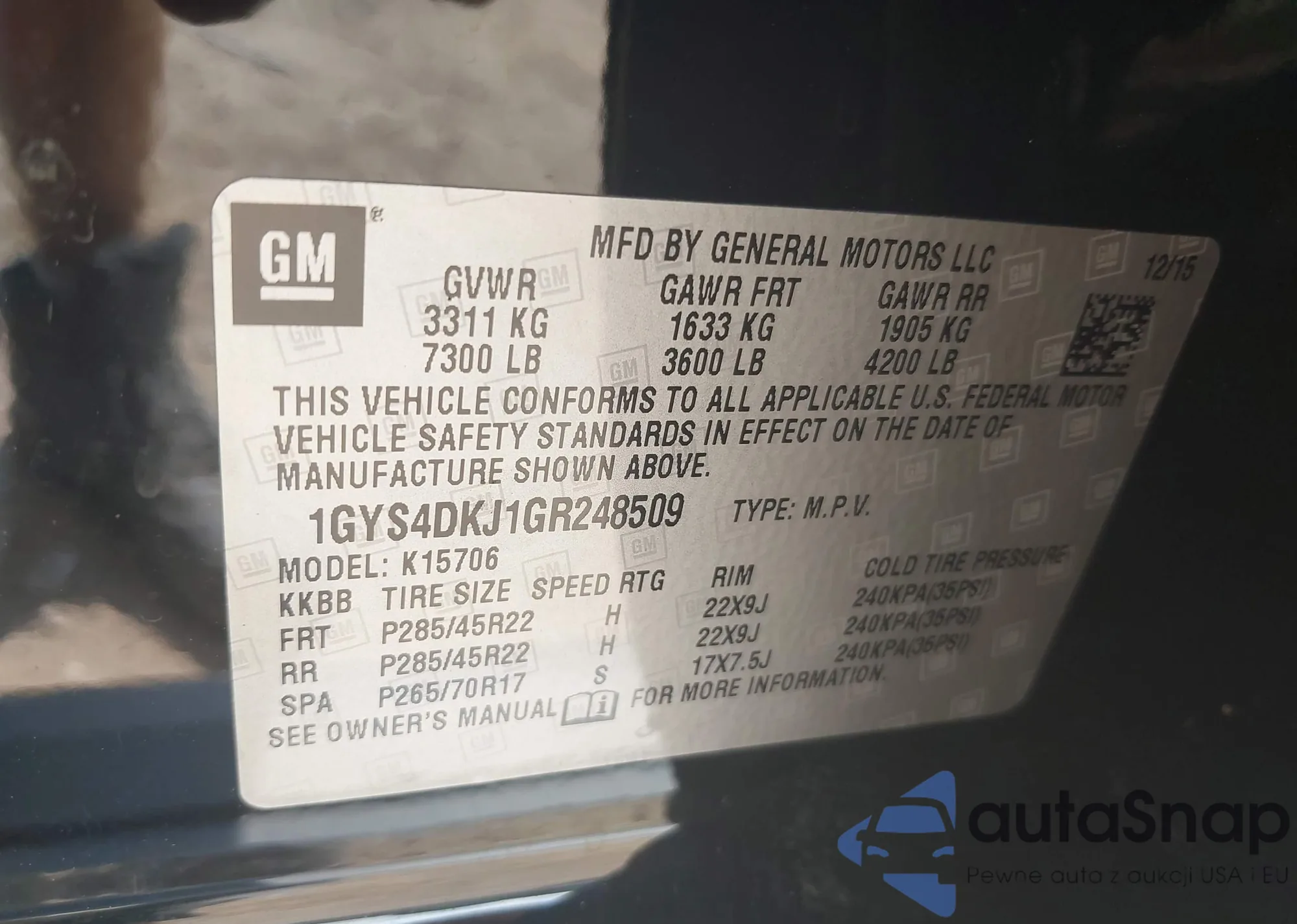 • VIN 1GYS4DKJ1GR248509