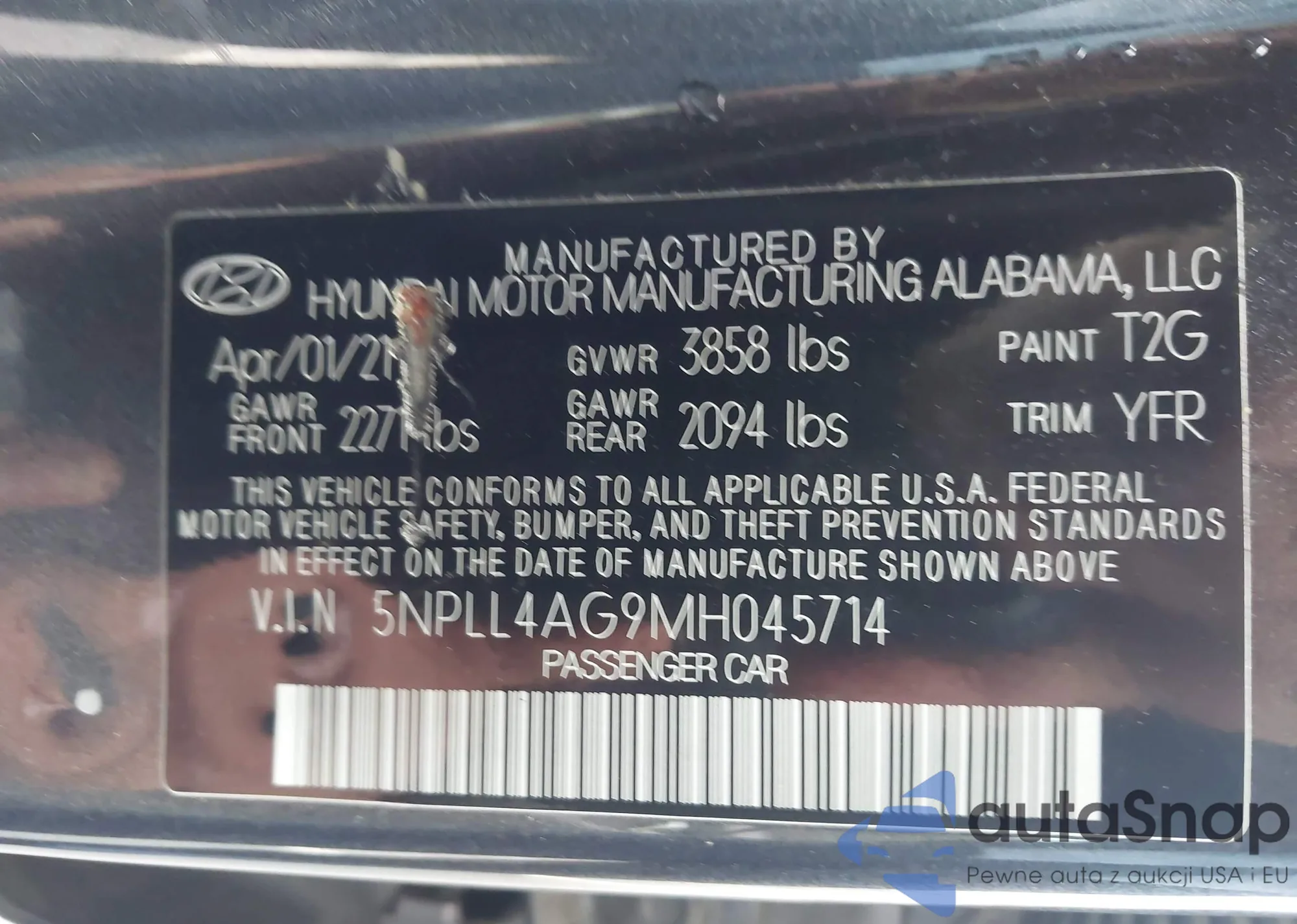 • VIN 5NPLL4AG9N1H04S74