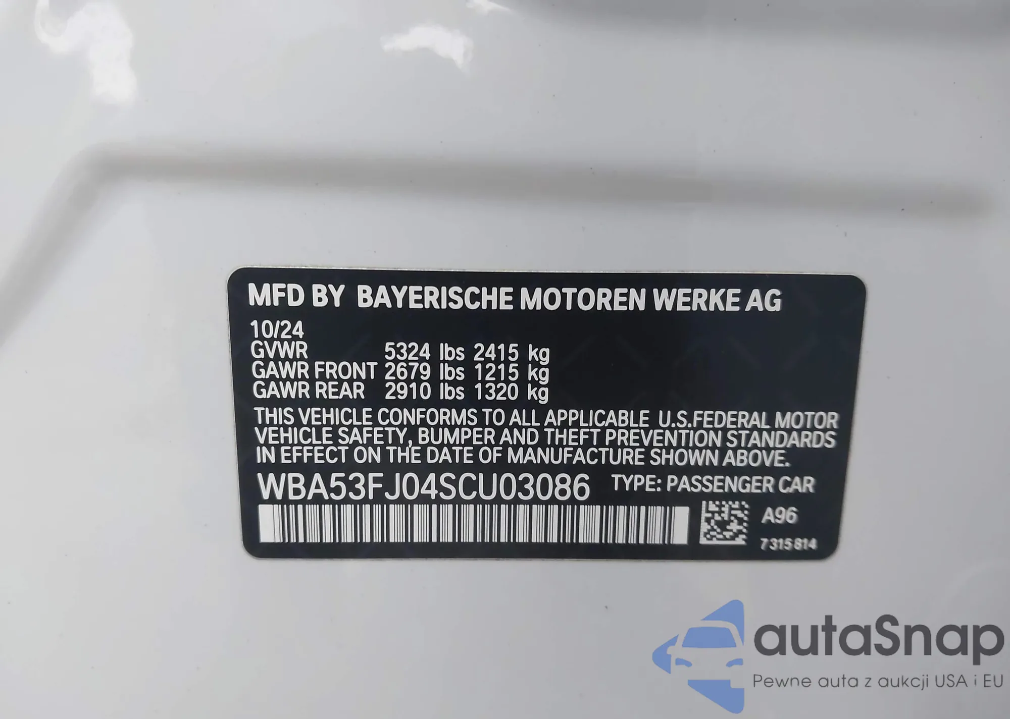 • VIN WBA53FJ04SCU03086