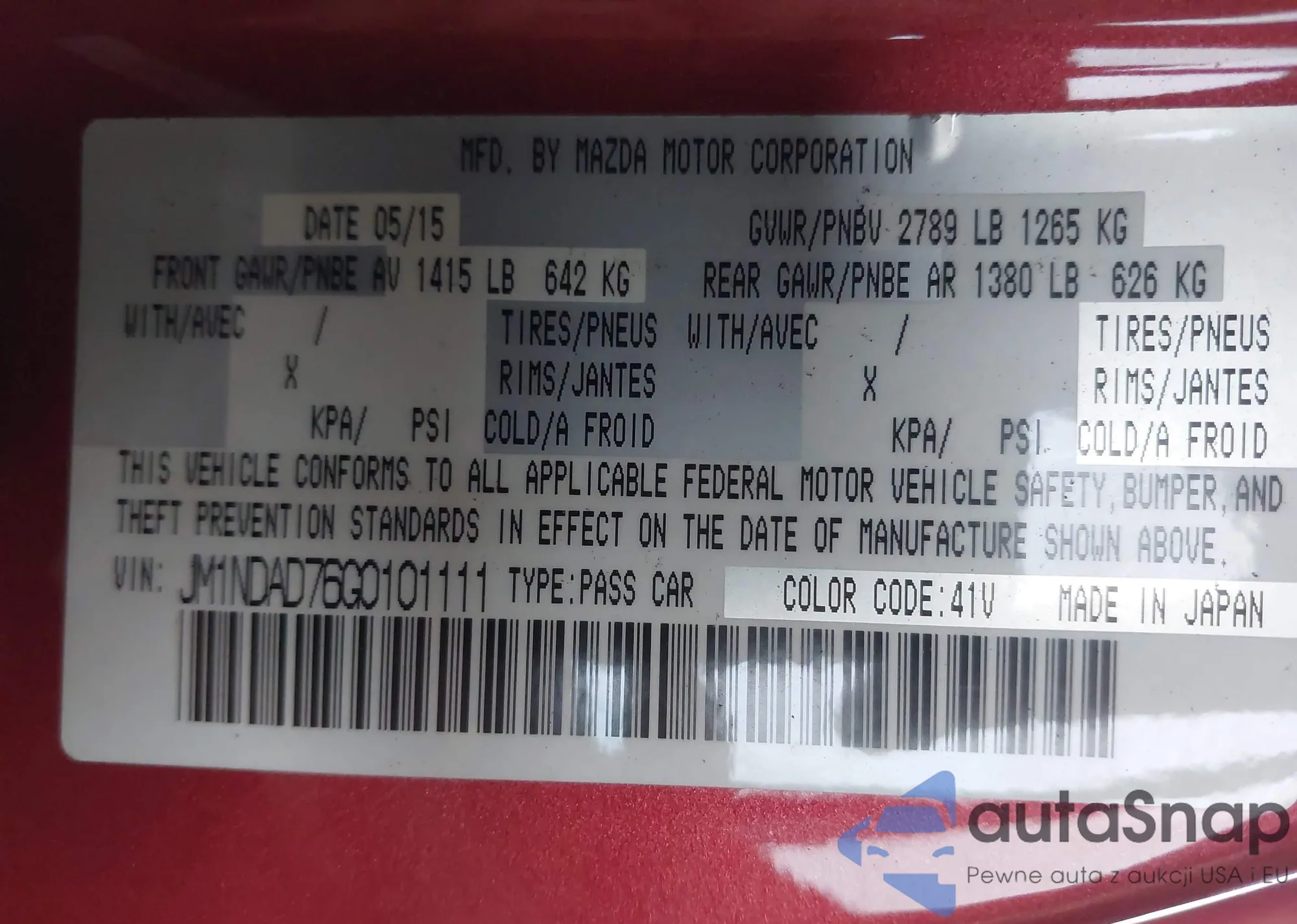 LOT: 43519962 VIN: JM1NDAD76G0101111
