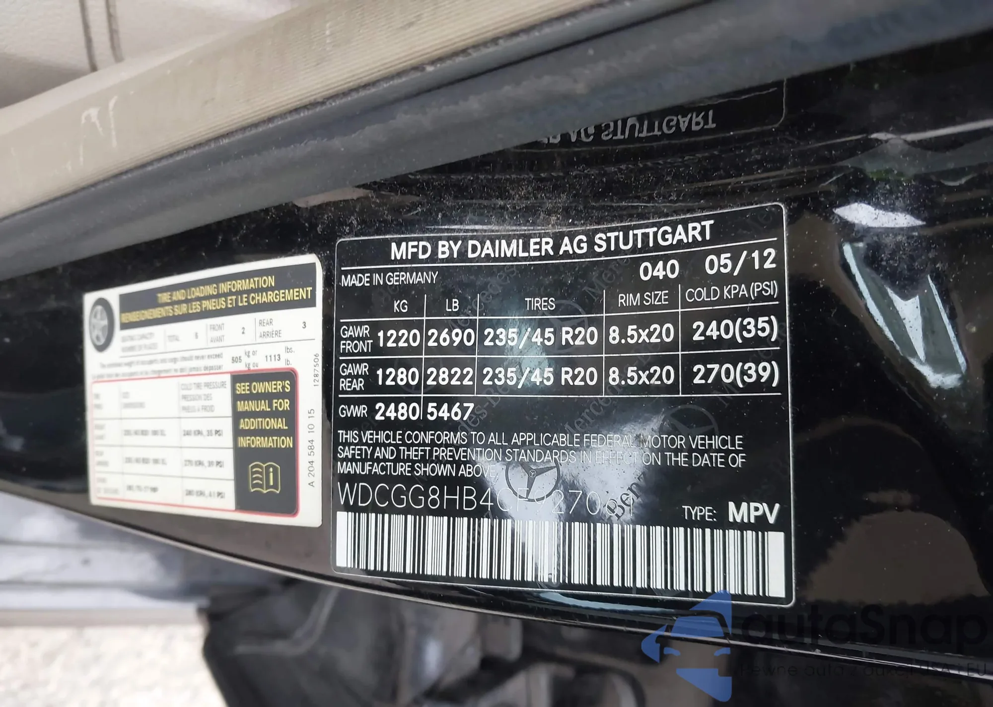 • VIN WDCGG8HB4CF927061