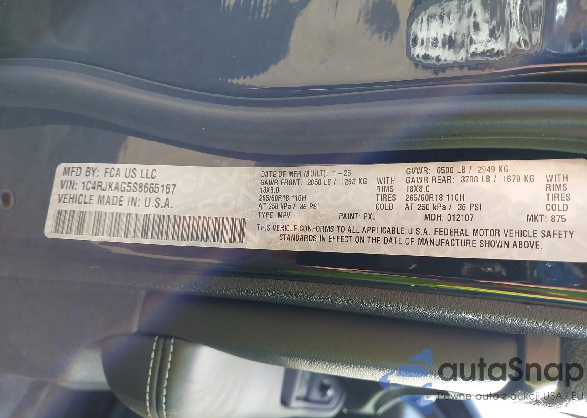 • VIN 1C4RJKAG5S8665167