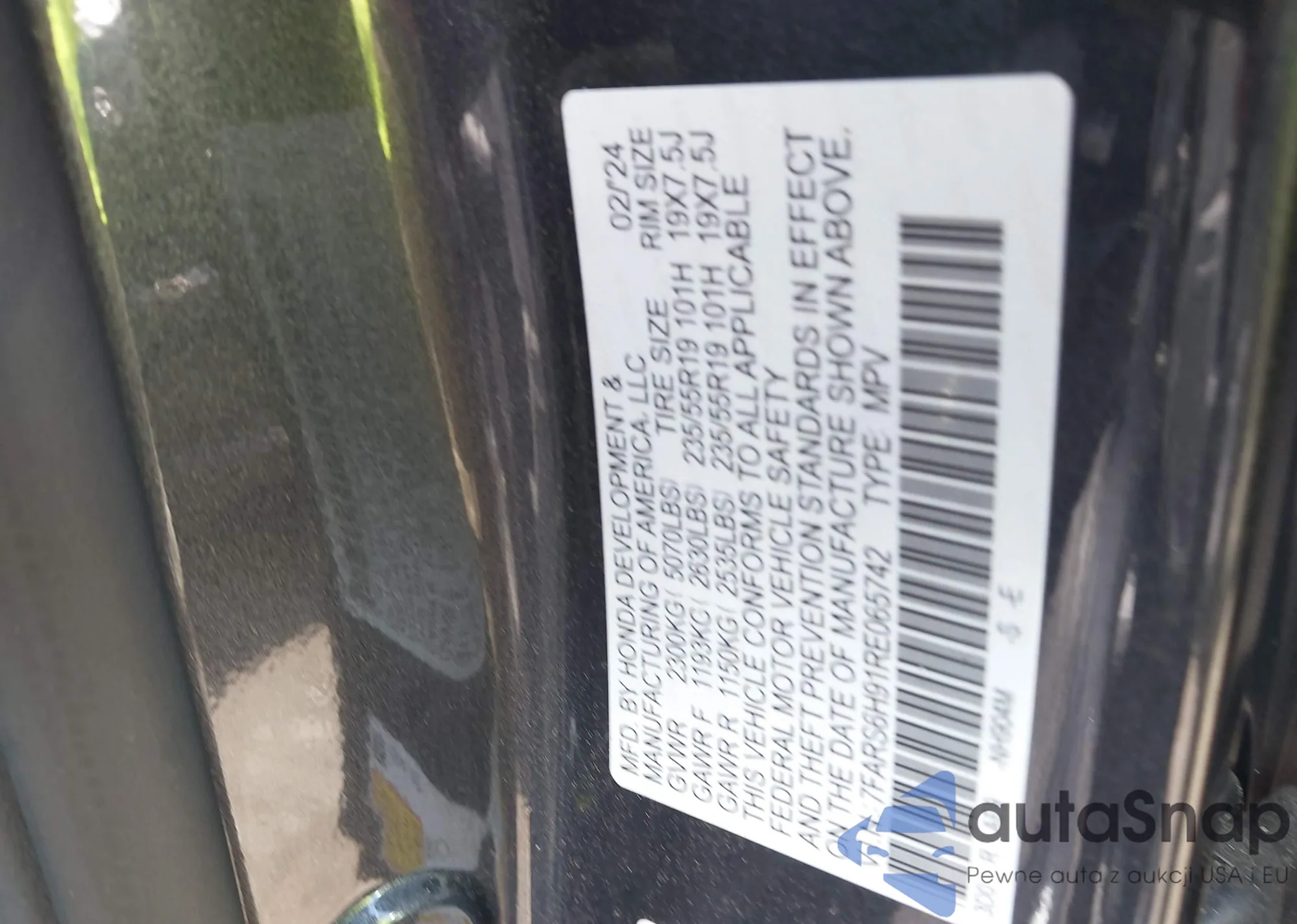 LOT: 42186813 VIN: 7FARS6H91RE065742