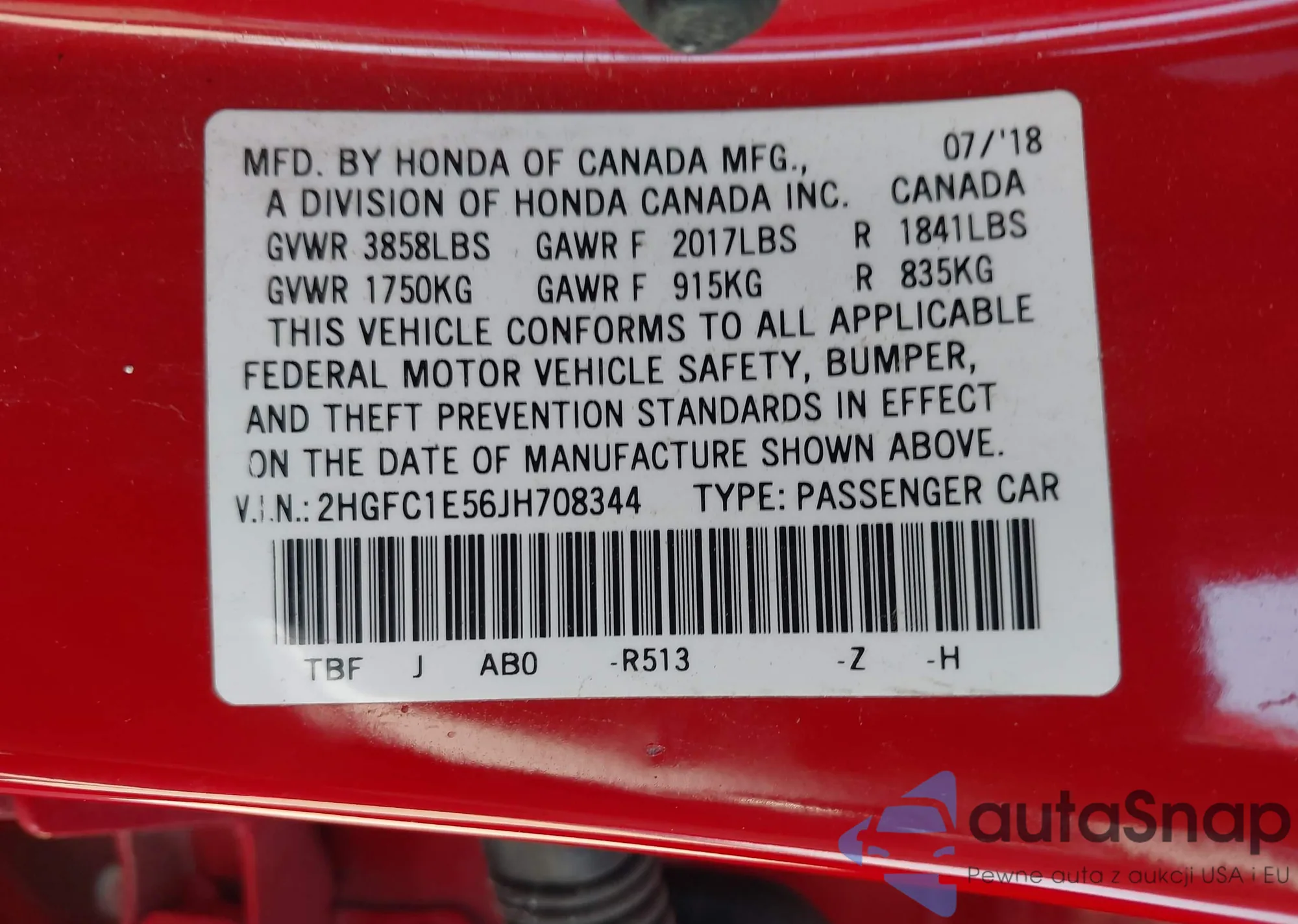 • VIN 2HGFC1E56JH708344