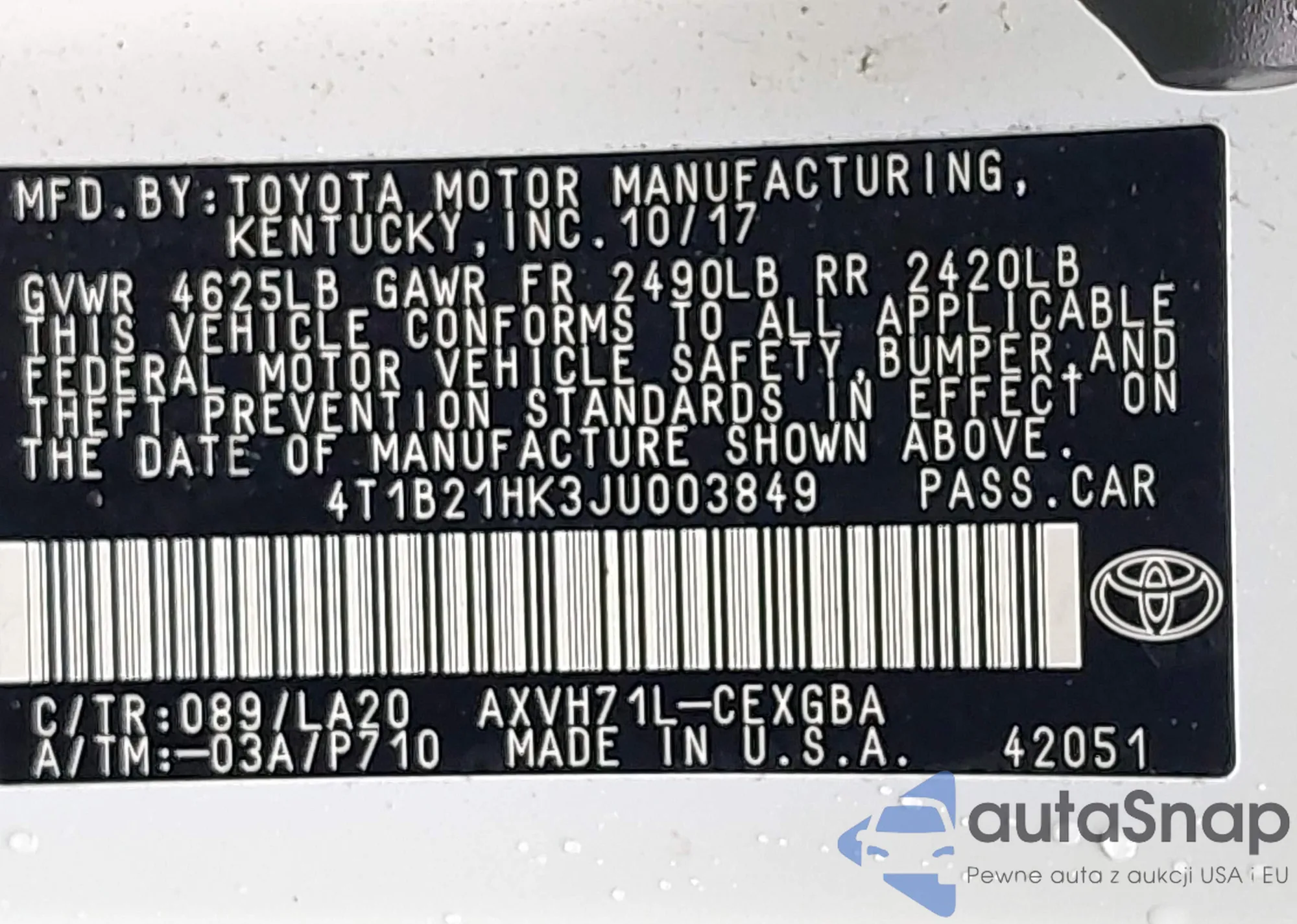 LOT: 43012771 VIN: JTDKB20U383344370